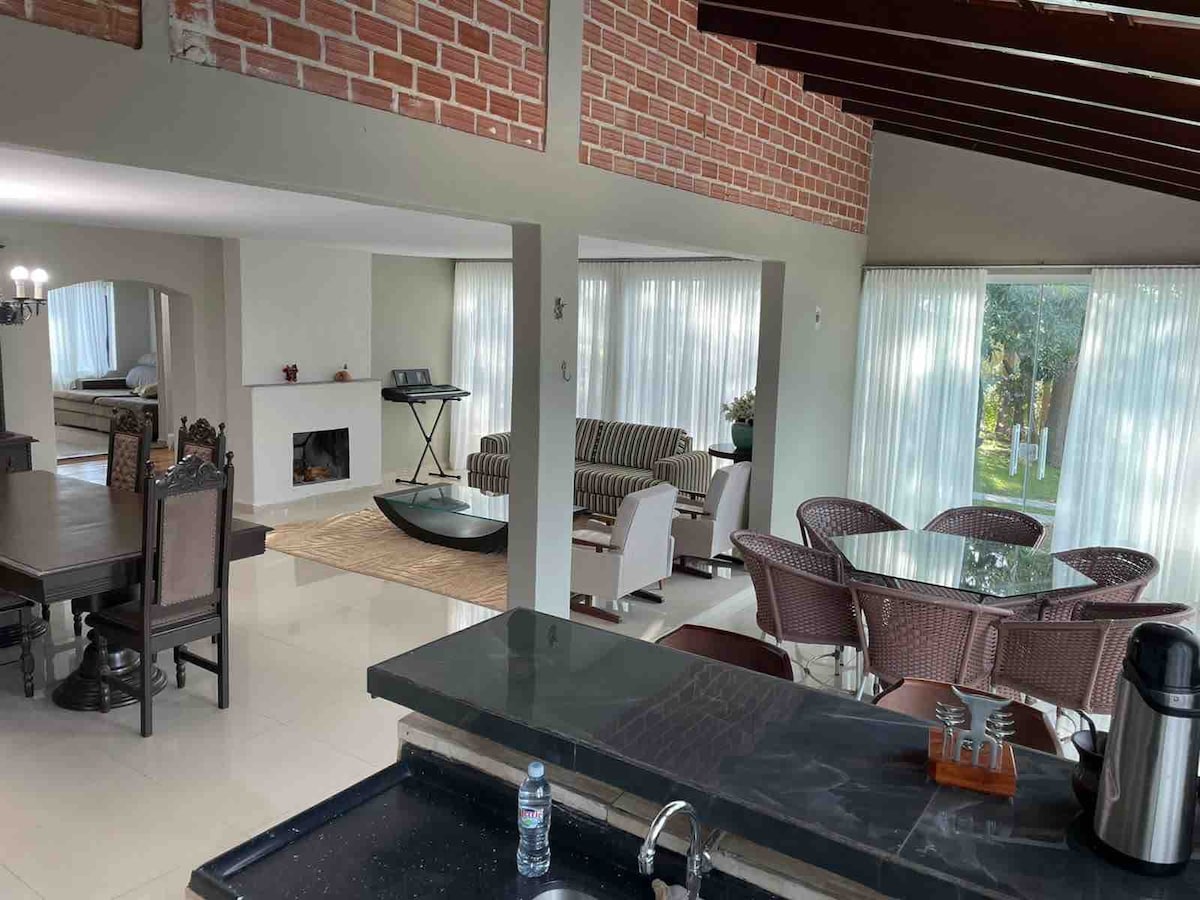 Foz-du-Iquasu Hava Limanından (IGU) cəmi 10 dəqiqə və İquasu Şəlalələrindən 15 dəqiqə məsafədə yerləşən bu məkanda təbiət, məxfilik və rahatlıq bir araya gəlir. Sahəsi 400 m²-dən çox olan birmərtəbəli ev 🛏️ 2 vanna otağı olan yataq otağı + 2 yataq otağı Geniş və rahat çarpayılar Kondisioner, otağı qarartmaq üçün jalüzlər Pambıq yataq dəsti, əlavə yastıqlar Yüksək Sürətli Lifli Wi-Fi 🍽️ Tam təchiz olunmuş mətbəx, barbekü olan qurman məkanı və odun sobası 🏊♂️ Üzgüçülük hovuzu, bilyard masası və istirahət məkanları 🦜 Heyvanlarla bağlı təcrübə (qeyri-məcburi) Dincəlin və boş vaxtınızdan zövq alın.