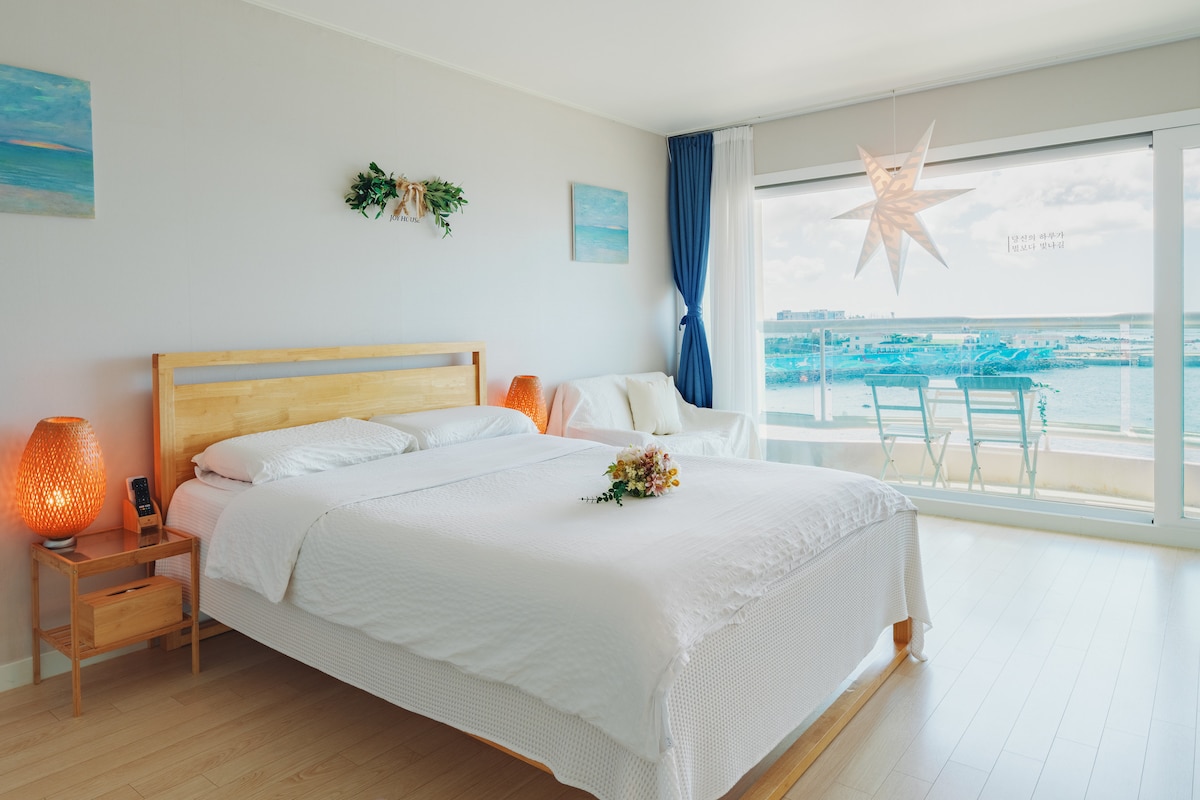 MonDieu! 제주 첫날 마지막날에 딱! l 공항 10분 오션뷰 더블룸 l 황홀한 바다뷰