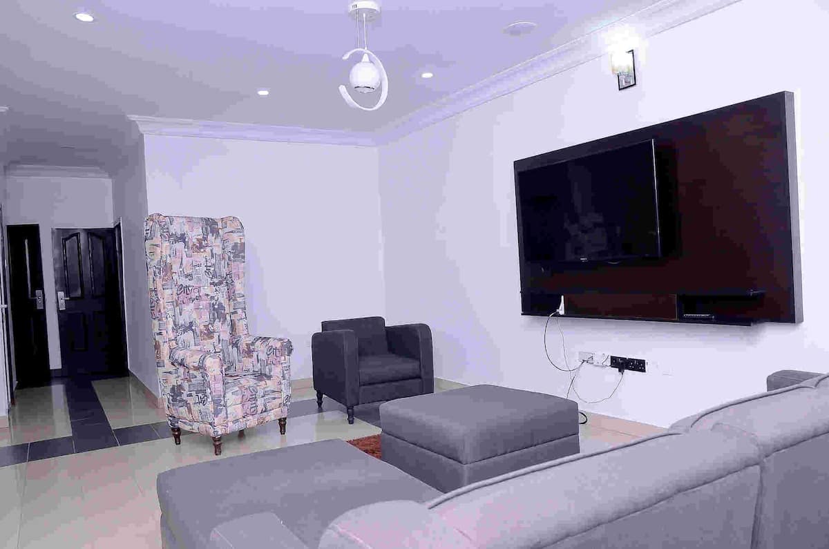 " Beautifully furnished 2 bedroom apartment located in a gated and secured environment within Lekki. Equipped with smart tvs (Alexa, Netflix and amazon prime), unlimited internet, 24 hrs power supply/Solar, DSTV premium, Ring video bell, fully air conditioned, water heaters, card/board games, parking space, fully equipped kitchen with microwave, refrigerator and kitchen utensils, washing machine, house keeper and/or in chef on request". We are here to give you a home away from home experience