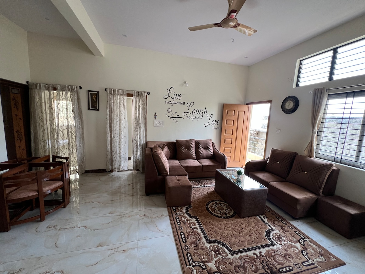 Rest your body and mind in our comfortable and peaceful individual builder floor near the heart of Mysore. It is ideal for groups or friends traveling to have a quiet rest, couples looking for a romantic getaway, or families wanting solace in their journeys. Discover a peaceful pitstop in our affordable, open, and well-ventilated environment on your journey from Bangalore to beyond. This is a 1bhk home on the ground floor.