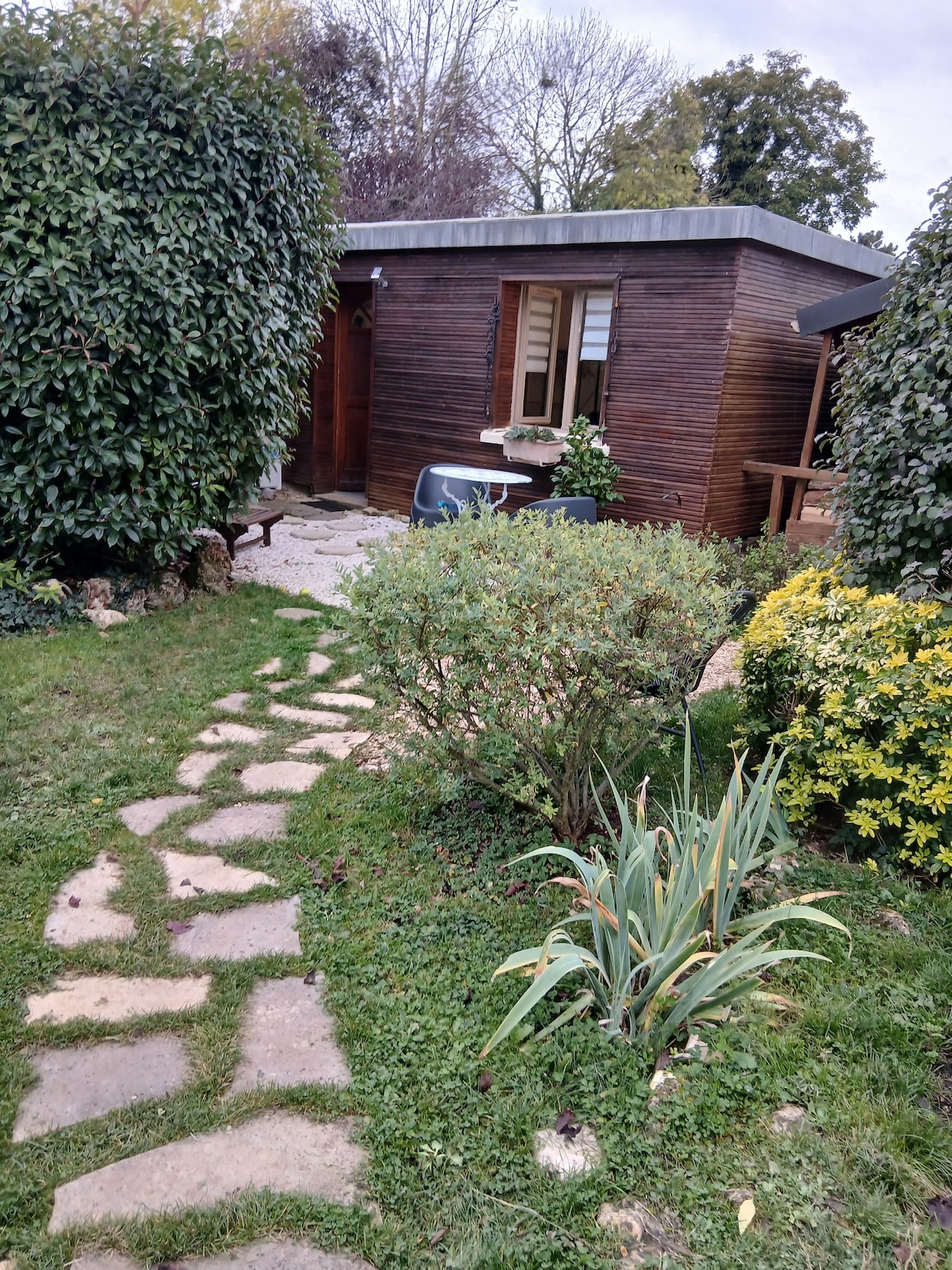 Chalet indépendant neuf meublé sur terrain pavillonnaire. Pour une à deux personnes. Deux pièces: -chalet studio meublé 17 m² cuisine équipée (plaque induction un feu, micro-ondes, réfrigérateur, vaisselle), chambre 1 lit 1,40m, salle de douche avec WC. Confort climatisation réversible chaud / froid. Draps et linge de maison fourni. -Véranda salon 20 m² exposition sud sur jardin. Gare de Trappes à 550 m 7 min à pied , Paris-Montparnasse et Paris la défense 30 minutes, Versailles 10 minutes