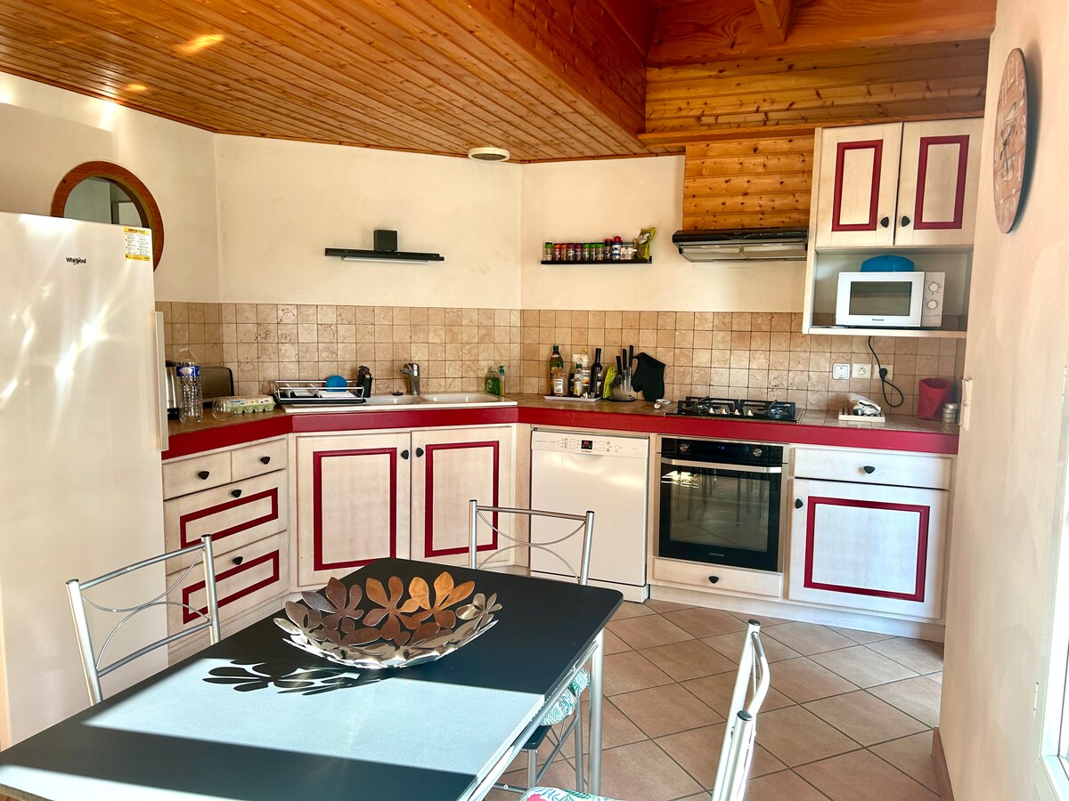 Sizə ev bələdçisində 8 velosiped (02/22-ci ildə alış-veriş) və/və ya avtomobilimizi (Suzuki Vitara) —>qiymətlərlə təmin etməyi təklif etməklə həyatınızı asanlaşdırırıq. 200m2 evimiz təbiət qoynunda, birbaşa vəhşi sahilə və Sabias və Belle Maison çimərliklərinə (5’) gedən velosiped yolunun kənarında yerləşir. Port Joinville velosipedlə 9’ uzaqdadır. Otaqlar: 40m² 1 əsas süita, 3 hamam otağı, 3 tualet, mətbəx, 30m² qonaq otağı, 25m² SAM, 3000m2 bağ daxil olmaqla 5 yataq otağı