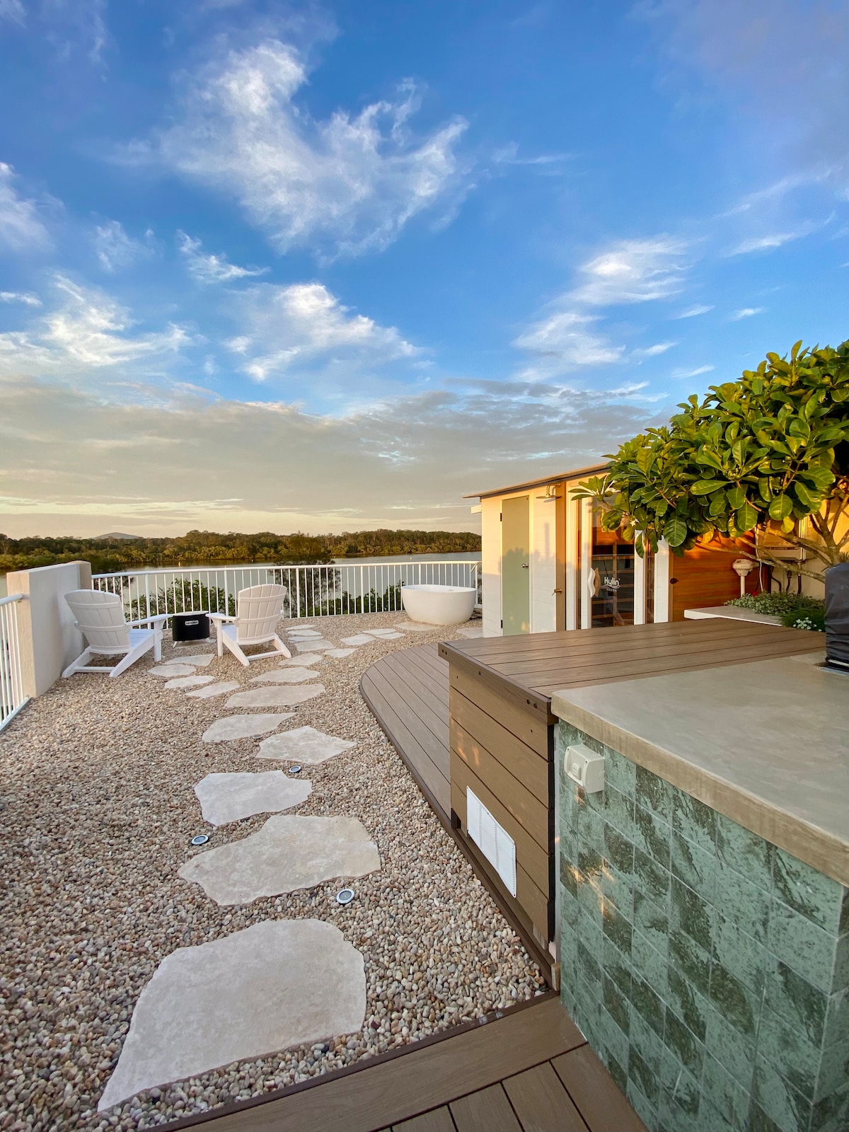 Discover the award-winning La Casita, a luxury bush retreat on the Sunshine Coast featuring two king-sized bedrooms, a stunning bathroom with a glass roof and starlit floor, an outdoor fire pit, a spa, and a sauna. Modern Queenslander aesthetics and privacy-focused design and landscaping make it the perfect escape near the coast's beaches, rainforests, golf courses, and hinterland. Book now and experience the ultimate luxury retreat, complete with two highland cows.