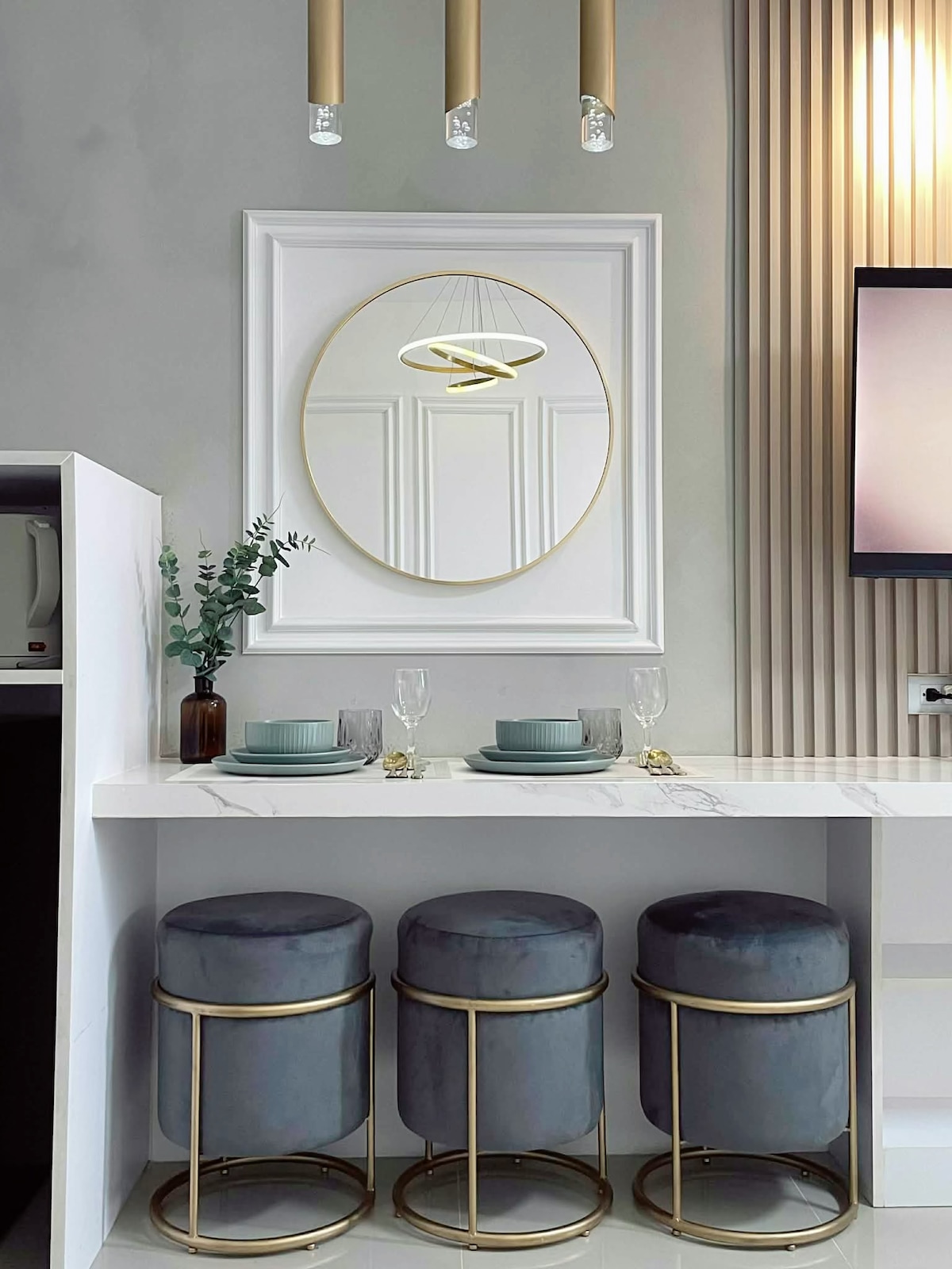 Ailə və istirahət üçün mükəmməl geniş Tam mebelli kondominium dizaynı. Ev mebeli (divan, Netflixli Smart tv, kabel televiziyası və sürətli internet, 6 nəfərlik yemək masası), tam mətbəx (düyü peçi, induksiya peçi, sıra başlığı, elektrikli su qızdırıcısı, yemək dəstləri və qab-qacaq, qazan tavaları) daxildir. 2 hava şəraiti, Çarpayılar (kral Ölçüsü, İkinəfərlik, Tək çıxıntılı çarpayı). T&B (teklif, isti və soyuq). Damın üstündə camaşırların qurudulması üçün kubik. İmkanlar: Hovuz, idman zalı, bilyard, uşaqlar üçün oyun evi və klub evi.