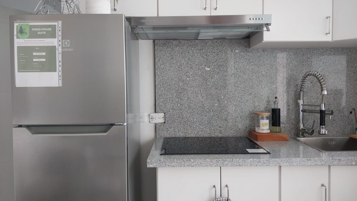Yaşıllıqlar, açıq mətbəx və binanın içində qaraj olan rahat müstəqil süita. Ev heyvanları üçün uyğundur, cütlüklər, dostlar və səyahətçilər üçün yaxşıdır Bura ailə evinin arxasında təhlükəsiz və sakit bir məkandır Yaşayış yeri 3 nəfər üçün nəzərdə tutulub (maksimum 4 nəfər) və çarpayı və hamam otağı olan əsas yataq otağı var. Divan-çarpayısı olan ikinci otaq Tətbiqdə təklif etdiyimiz hər şeyi nəzərdən keçirin. Avenida El Retorno və Los Incas ərazisində yerləşir