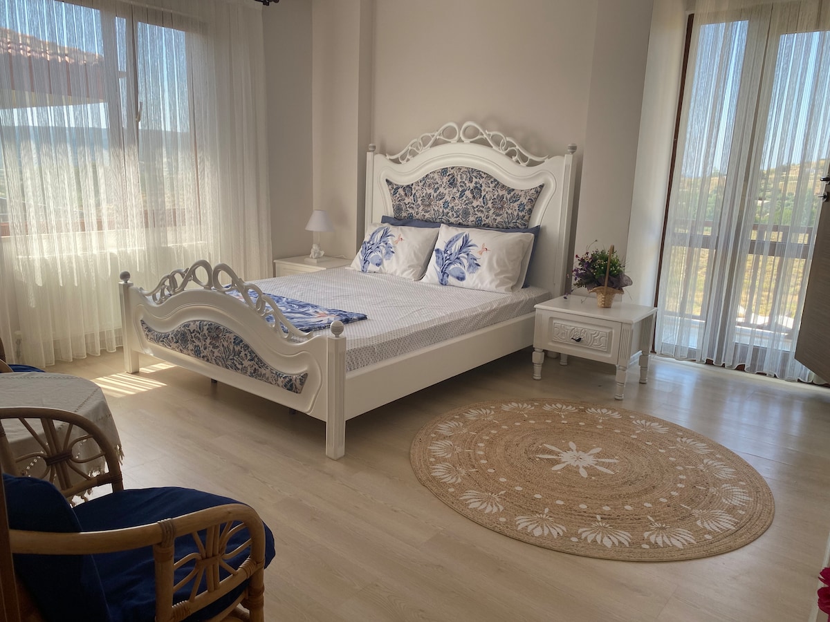 Mənzilimizdə bağça və kondisioner var və evin bütün ehtiyacları var. 4 nəfərlik ailə rahat qala bilər. Adanın mərkəzində yerləşir. Yıldızkoy, Kuzulimanı Çimərliyi, Kaleköydən 5 dəqiqə uzaqlıqdadır. Adada yalnız yaşayış sahəsi, ətrafında heç bir tikinti və s. olmayan sakit bir məkandadır.