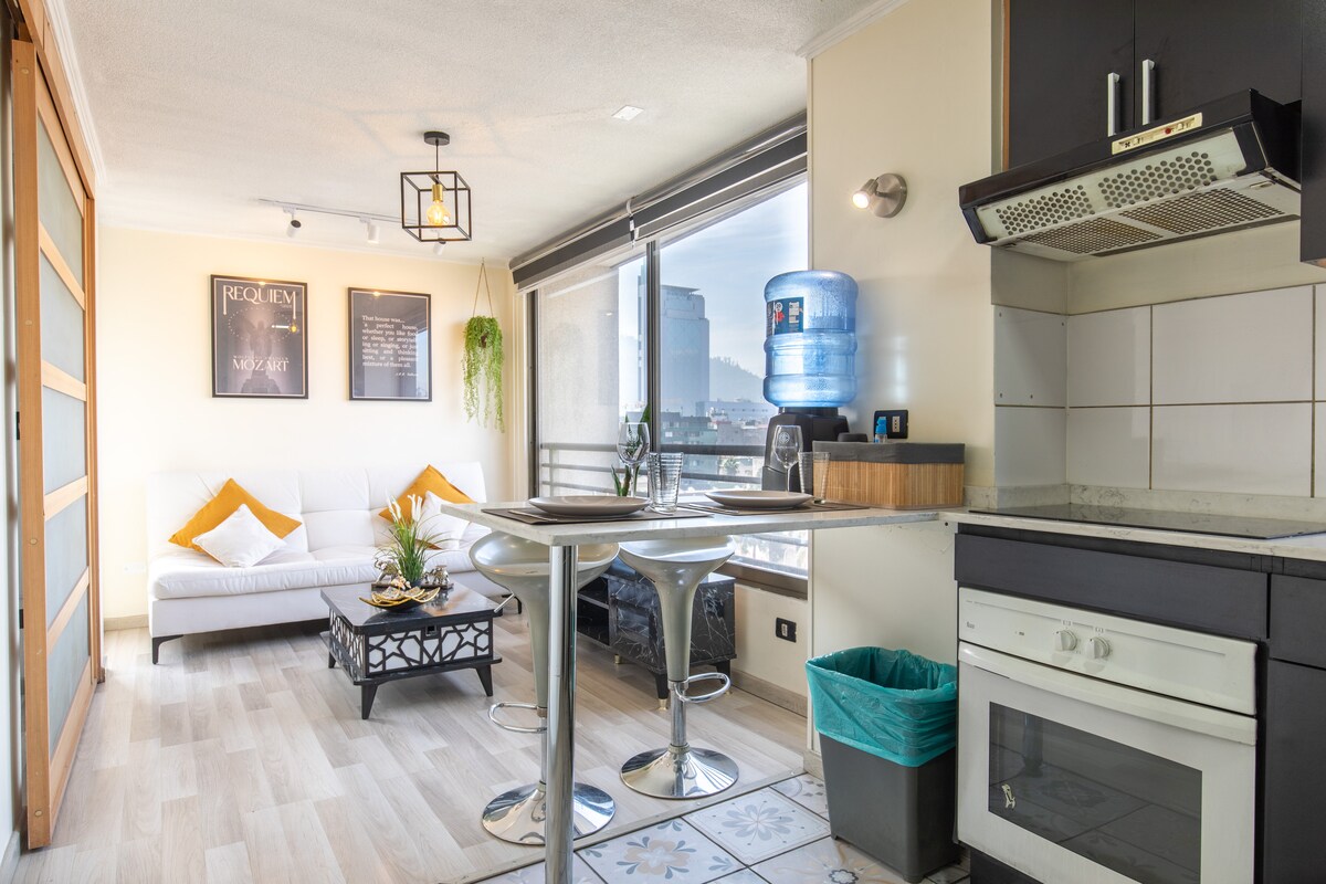 Bu mənzil dincəlmək və şəhərdən zövq almaq üçün idealdır. Mərkəzdə, şəhərin ən yaxşı yerlərindən biri olan Santyaqo Centro və Providensiya rayonları arasında yerləşir. San Kristóbal Hill və Sky Costanera-nın gözəl mənzərələrini təqdim edir. Metro və avtobuslardan cəmi 3 dəqiqəlik məsafədədir. Daxildir: Pulsuz Wi-Fi, tam təchiz olunmuş mətbəx, döşəkağılar və dəsmallar, böyük Smart TV olan böyük çarpayı. İstənilən vaxt gəlməyinizə imkan verən açarla özünəxidmət girişi.