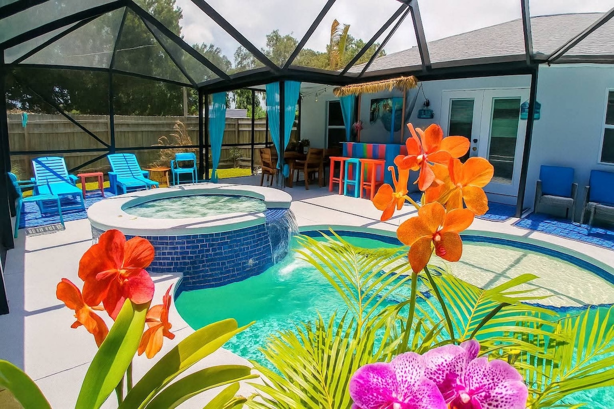 Xoş gəlmisiniz... sizi FL böcəklərindən qorumaq üçün "The Contemporary Cove" a TAM EKRANLAŞDIRILMIŞ ARXA VERANDA. Özünüzü evdəki kimi hiss edərkən sakit sakitliklə müasir zərifliyi qarışdırmaq üçün hazırlanmış bu heyrətamiz müasir vahə ilə dəbdəbəyə baş vurun. Qəribə bir məhəllədə yerləşən bu ev üslub, komfort və istirahət axtaranlar üçün son istirahət təklif edir. ResortStyle Pool: Böyük ölçülü veranda, açıq havada istirahət zonası və əyləncəli və ya sakit axşamlar üçün buxarı ilə əhatə olunmuş parıldayan mərkəz.