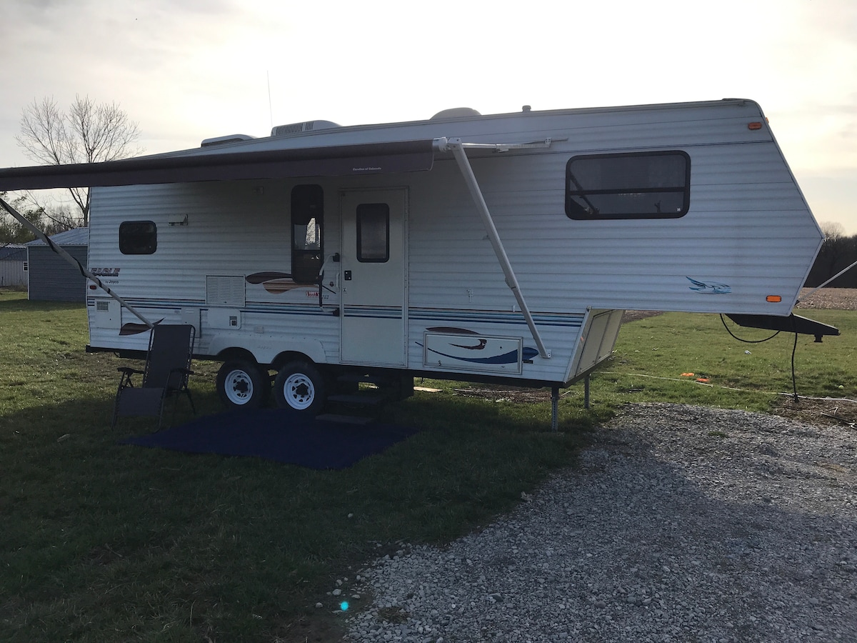 Səyahət və ya iş səbəbilə sadəcə uzaqlaşmaq və ya yatmaq üçün vaxtınızdan zövq alın. Ölkənin Hymera şəhərindən bir qədər şimalda yerləşir. Shakamak Dövlət Parkı altı mil uzaqlıqdadır və Greene-Sullivan Dövlət Meşəsinə qısa bir məsafədədir. 38 mil Marafon emalından ( Robinson, IL) 24 mil Hoosier Energy Generation Stansiyasından (Merom, IN.) Terre Haute-dən 22 mil və Lintondan 20 mil məsafədə. Bütün 5-ci təkər kamperinə girişiniz olacaq. Çöldə istifadə üçün kiçik yanğın çuxuru var, odun tədarük edilmir.