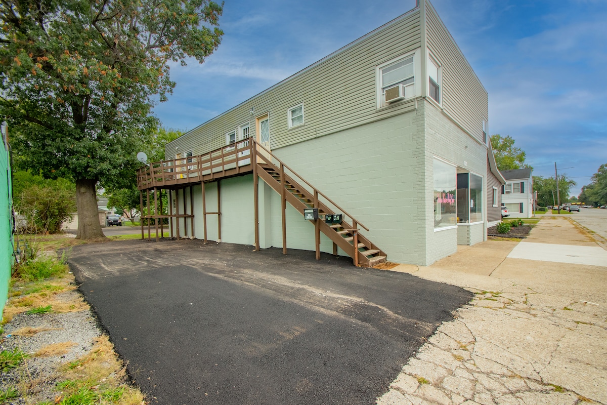 Stay steps from Valparaiso University in this centrally located 2BR Airbnb on Garfield Ave. Perfect for campus visits, college tours, graduation, or business travel. Features two bedrooms, primary bedroom has a TV, two private balconies for morning coffee, and free on-site parking space (plus nearby public parking). Walk to Valparaiso University campus. Our property boarders campus property. We are 3 minutes to downtown Valparaiso which offers luxurious Square style dining, shops, and events.