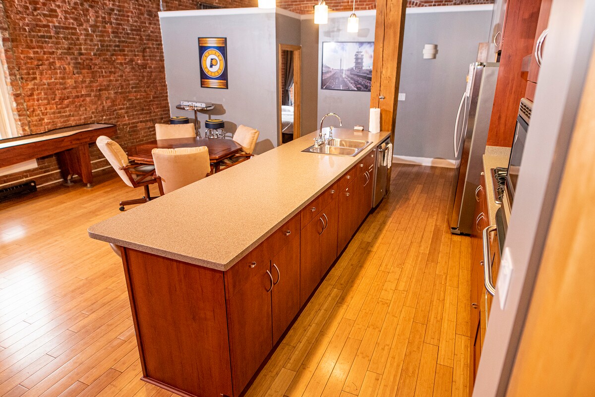100 year old historic building completely remodeled in the mid 2000s. Enjoy the 20ft ceilings, exposed brick, and modern layout. Location, Location, Location, you will be able to walk just about anywhere downtown Indy. 3 min walk to Convention Center and Gainbridge Fieldhouse 8 Min walk to Lucas Oil Countless restaurants and entertainment near by Lighting speed internet (1 GIG) Free Coffee 1 Free Parking Spot in the Heart of DT -$20/$40 savings per day. Includes Free EV Charge