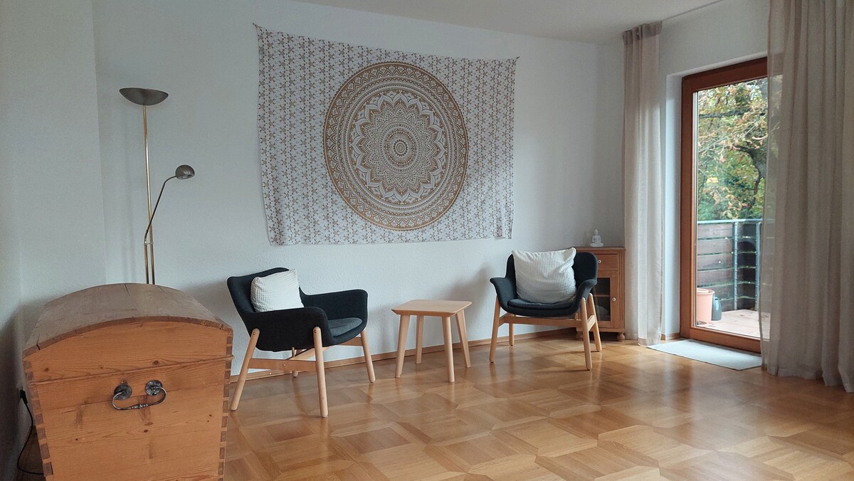 Ober-Ingelhaymın mərkəzində yerləşən bu rahat mənzildə bütün ailə ilə birlikdə dincəlin. Ətrafı dolama xiyabanlar və orta əsrlərə aid çəmənliklərlə əhatə olunmuş, möhtəşəm qəsr kilsəsi və çoxsaylı şərab zavodları olan "Səyahət Oazisi" səfərinizdə yaşıl sükunət oazisidir. Burada dohlenin cıvıltısını dinləyə və dincələ bilərsiniz. Özünüz üçün bir səfər axtarırsınızsa, Anna yerli məşqçi və yoga təklif edir.