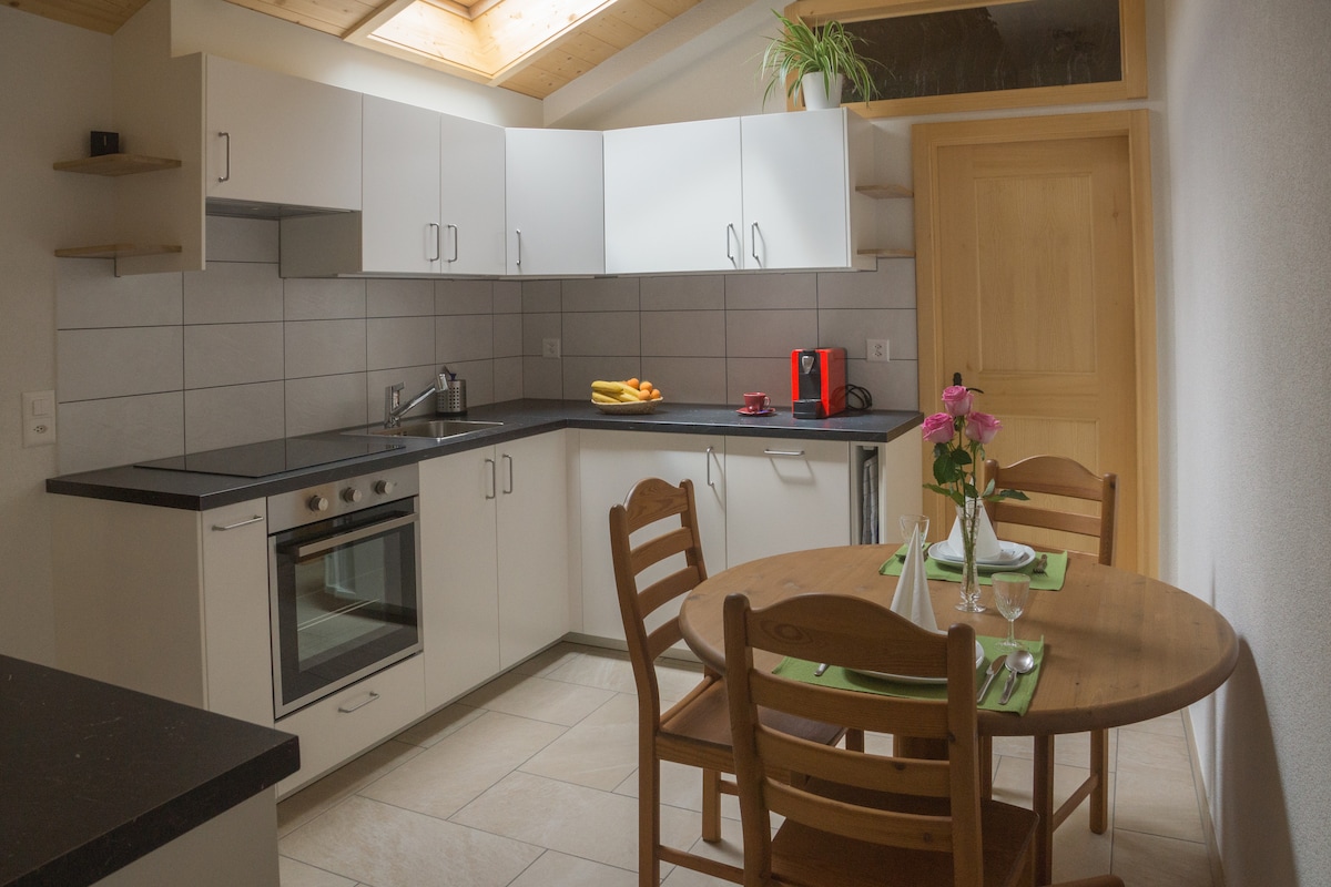 Öz-özünə idarə olunan, 2.5 yataq otağı olan mənzil (1 kral çarpayısı, 1 kraliça çarpayısı və 2 nəfərlik çarpayı), köhnə İsveçrə dağ evində müasir təmir edilmiş, öz giriş qapısı və köhnə gözəl ağacın altında bağ oturma sahəsi. Alış-verişdən 5 dəq. məsafədə və İnterlaken mərkəzinə 10 dəq. məsafədə yerləşir. Mənzil dəbdəbəli və rahat üslubda təchiz olunub və bəzədilib.