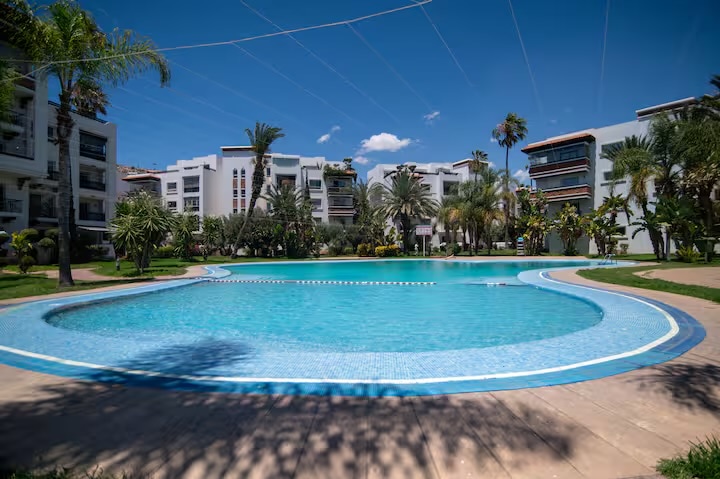 Profitez d'un logement élégant et central à quelques minutes à pieds de la plage et de la promenade d'Agadir bay. Situé au centre ville, proche de toutes commodités, restaurants, cafés, magasins, centre commercial, banques, pharmacie. Logement luxueux et neuf situé dans une residence sécurisée et confortable avec une piscine commune en extérieur. Nous offrons une connexion internet haut débit (fibre optique), avec compte Netflix.