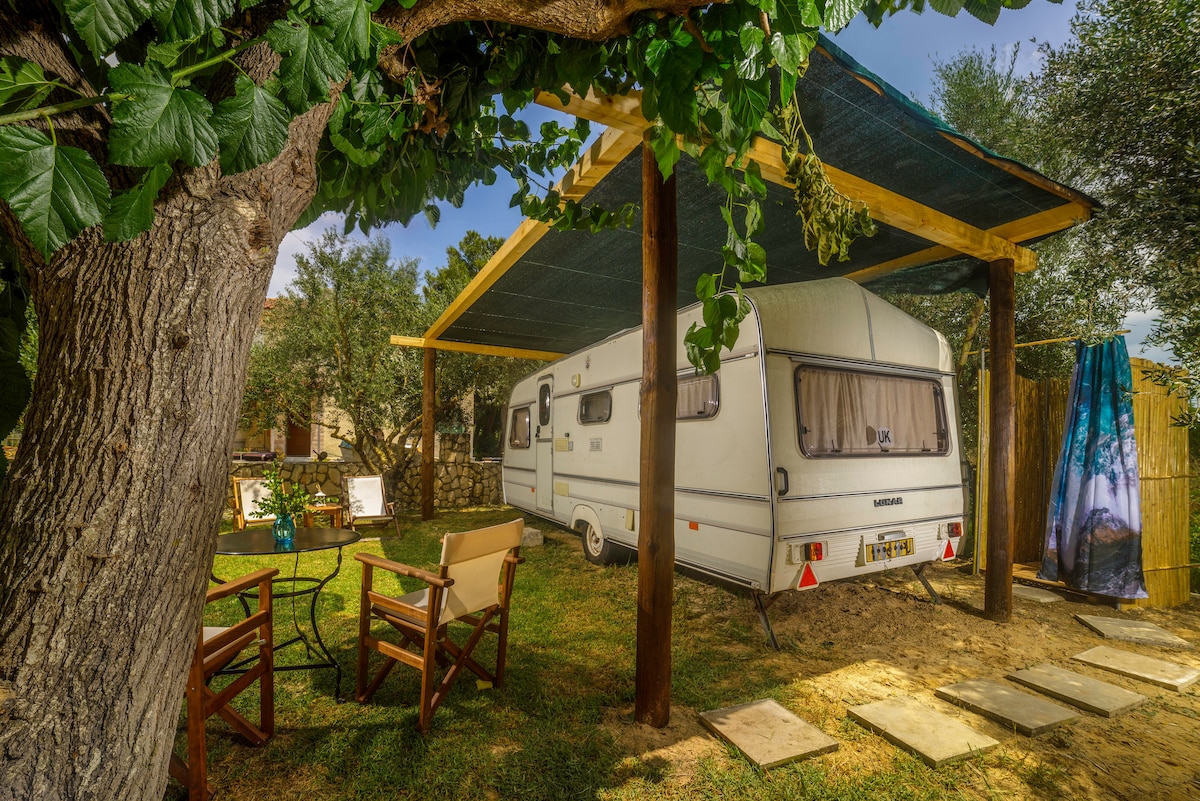 Zakintos şəhərindən 2 km məsafədə yerləşən bu karvan büdcə səyahətçiləri üçün mükəmməl seçimdir. Mövqe sakitdir,çünki təbiət qoynunda yerləşir. Karvanda hər zaman zövq ala biləcəyiniz böyük ikinəfərlik çarpayı, soyuducu, mikrodalğalı soba, tualet və gözəl bağça var. Bağçada vaxt keçirməkdən və açıq havada duşdan zövq almaqdan çəkinməyin. Unutmamaq lazımdır ki, karvan isti su və mətbəx təklif etmir, odur ki, onu bron etməzdən əvvəl nəzərə almalısınız. Lakin bu, əla seçimdir.
