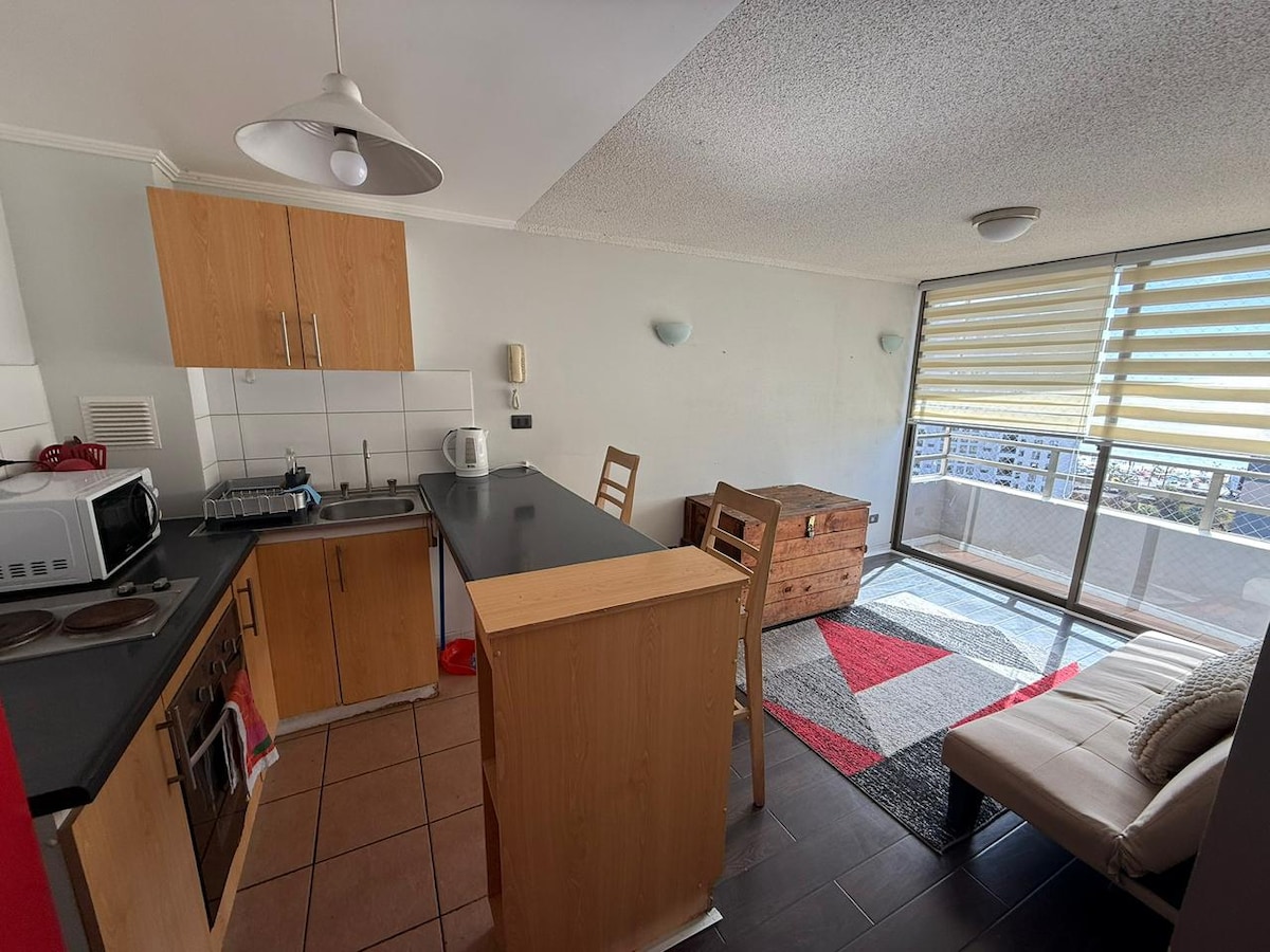 Yeni yeni çatdırılmış, sahilyanı ön, Playa Cavancha-dan 5 dəqiqəlik məsafədə, Baquedano promenadasının ortasında, tarixi mərkəz, sənətkarlıq yarmarkaları, pablar, muzeylər və daha çoxu, əlinizin altında olan ictimai nəqliyyat, yeni açılış edilmiş ictimai parklar, panoramik dəniz mənzərəsi, Cavançanın əsas çimərliyinə sürətli giriş, parka giriş, ictimai hovuz, yeni, müasir və tam təchiz olunmuş mənzilin rahatlığı ilə qarışıq.