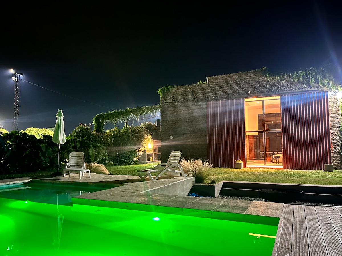 Quedate en este lugar único y disfrutá de los sonidos de la naturaleza. -Habitación principal con cama doble y salamandra -Habitación con 2 sommiers individuales y sofá chez lounge -Galería con hogar a leña -Cocina completa y comedor con salamandra -Fogón circular en tierra con parrilla -Pileta tipo jacuzzi en verano -Huevos frescos de gallinas del campo y aromáticas de la huerta para cocinar -Muy cercano al centro de Baradero, el pueblo más antiguo de la Provincia de Buenas Aires -Wifi