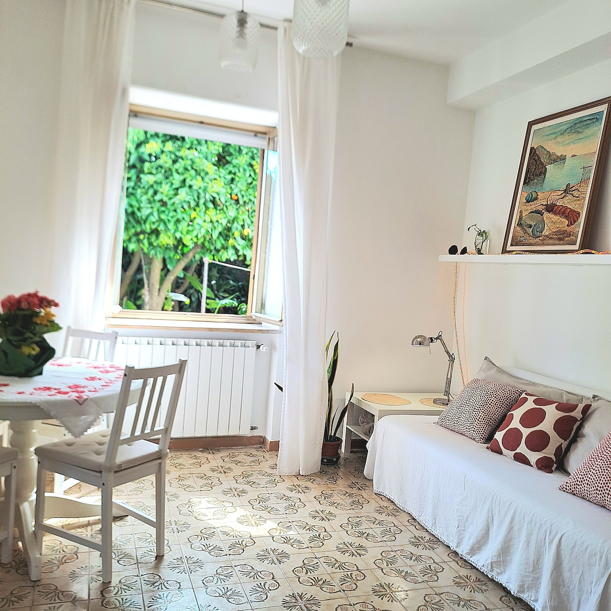 Səma ilə dəniz arasında dayanmış, termal suları ilə dünyada məşhur olan Lacco Ameno şəhərinə baxan "Neso" (Oneso) təpəsində yerləşən Kasa Amena. O, hazırda Villa Parodi Delfino kimi tanınan qədim Villa Zavota yaxınlığında yerləşir. Cüzeppe Qaribaldi, 1884-cü ildə Aspromonte döyüşü zamanı əziyyət çəkən yaralardan termal suların köməyi ilə sağalmaq üçün orada qaldı. Evimiz ailələr üçün tamamilə təchiz edilmiş kiçik mənzillər təklif edir. - mətbəx guşəsi ilə təchiz olunmuş qonaq otağı. - əsas yataq otağı - duşlu geniş vanna otağı -lush Aralıq dənizi bağı: 2000 m2-dən çox olan qazon/ solarium/barbekü, tərəvəz bağı, meyvə ağacları, sitrus ağacları və üzüm bağı Mebellər işlək, müasir və yaxşı baxılır Öz səhər yeməyinizi və ya digər yeməklərinizi düzəltmək üçün mətbəx tam təchiz olunub -parkinq motosiklet və avtomobillər üçün mövcuddur -Bizim Mənzilimiz çox sakit bir yerdə yerləşir, lakin termal spaları, mağazaları, çimərlikləri, dəniz və muzeyləri ilə Lacco Ameno şəhərindən piyada cəmi 5 dəq. məsafədədir. O, həmçinin Casamicciola əsas limanının yaxınlığında yerləşir. Andrea Mennella sizi qarşılamaq üçün buradadır! ________________________________________