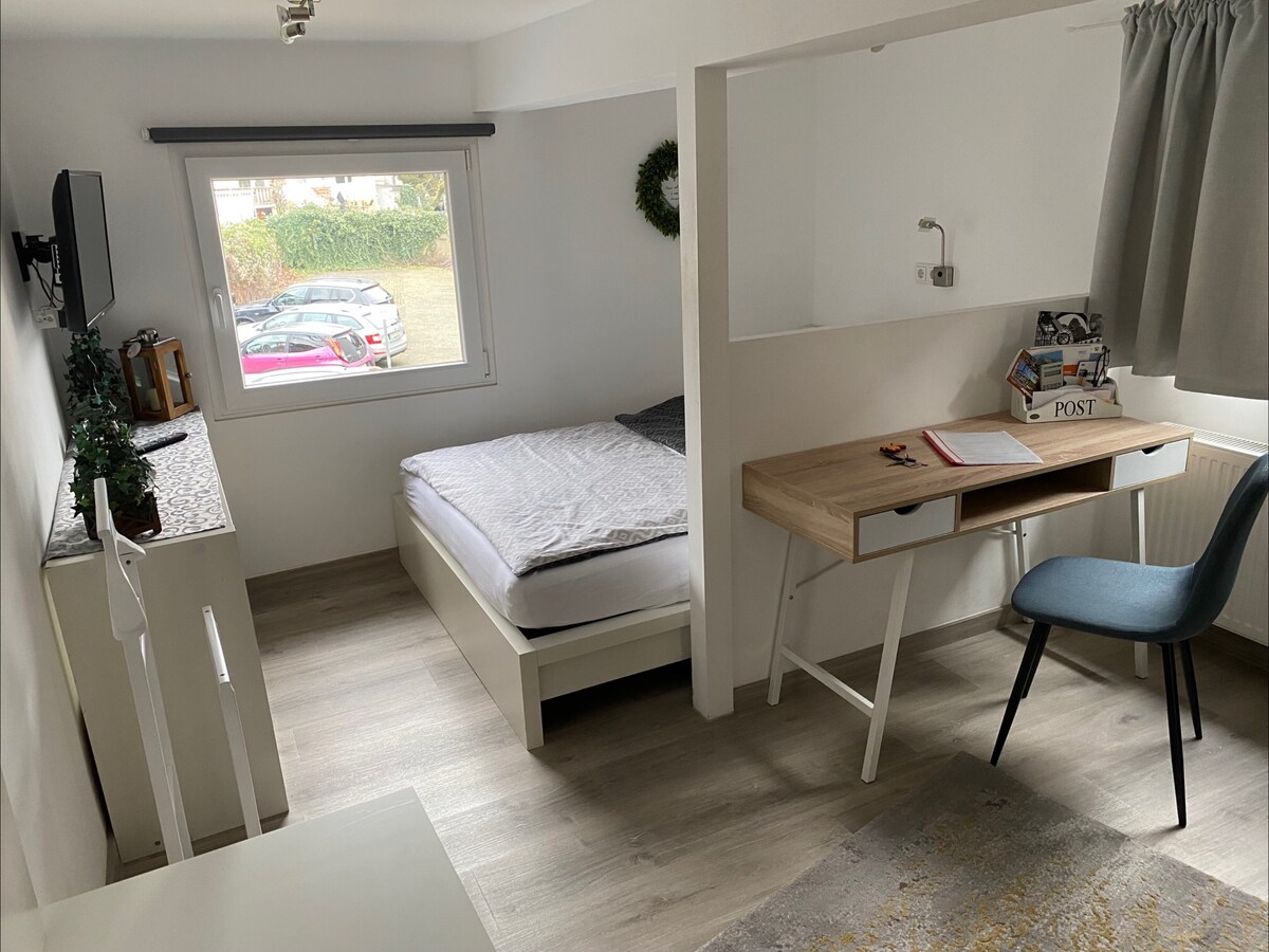 Rahat otaq, tualeti və kiçik olan ayrıca duş otağı 1 nəfərlik və ya ikinəfərlik çarpayı 80/160 x 200 (uzadıla bilən) 1 divan çarpayı 160 x 200 (açıldıqda) Mətbəx yoxdur, yalnız yemək bişirmə qurğusu (mikrodalğalı soba, isti boşqab, mini soba) və sadə mətbəx avadanlığı Evin qarşısında parkinq, öz girişi Qonaq otağı: 16 m² Yataq sahəsi: 4 Hamam otağı: 3 m² Məsafələr: -Supermarketlər 700m - Qatar Stansiyası Gevelsberg-Knapp 1 km -Bus dayanacağı Kirchwinkelstr. 250 m -Restoran, qəlyanaltı çubuğu 5 dəq