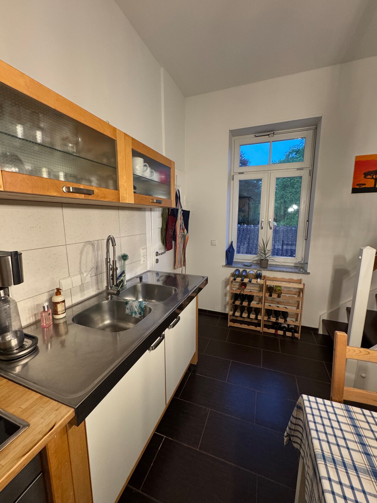 Egal, ob beruflich oder privat, diese Wohnung bietet die perfekte Mischung aus Entspannung und guter Anbindung. Ideal für Alleinreisende oder Paare. Highlights: - Super Lage: Ruhig und doch zentral gelegen. Mit öffentlichen Verkehrsmitteln oder Auto alles schnell erreichen. - Eigener Garten - vollausgestattete Küche - Kingsize-Boxspringbett - Einkaufsmöglichkeit fußläufig erreichbar - komplette Wohnung für Dich/Euch