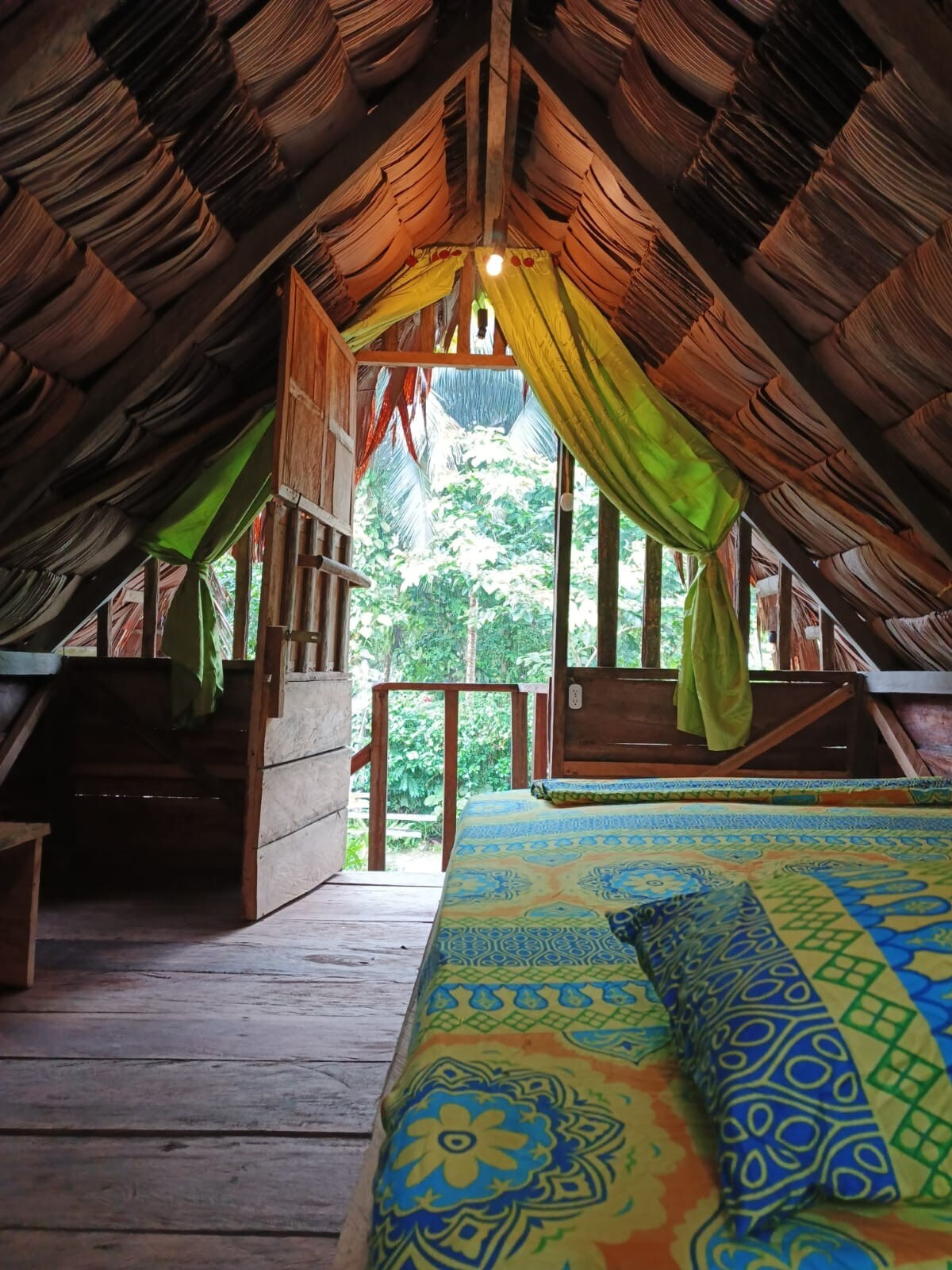 Cütlüklər üçün ideal olan ayrıca kabinə. Duşu, hamam otağı və ikinəfərlik çarpayısı var. Masası olan balkonu var və quşları və kəpənəkləri müşahidə edə biləcəyiniz bağlarla əhatə olunub. Hostel məkanı çimərliyə yaxındır, təxminən üç dəqiqəlik məsafədədir. O, icmanın çox sakit ərazisində yerləşir, bar, yataqxananın qarşısında yerləşir, kokladır və arxasında manqrov var. Bura istirahət etmək və təbiətdən zövq almaq üçün mükəmməl bir yerdir.