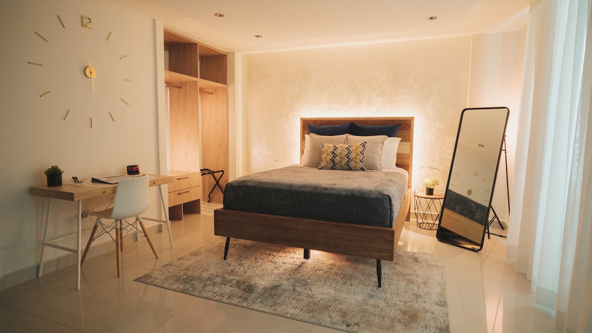 El San-Xuan/ Fairmont Otelinin yanında, ESJ Towers-də xüsusi olaraq Jr 1 Yataq otağına sahib idi. 16-cı mərtəbədəki bu mənzil birbaşa su idman növləri və çimərlik restoranları ilə yanaşı gözəl qumlu çimərlikdə yerləşir. Kral yataq otağı, girintili-çıxıntılı işıqlandırma, bütün ağ yataq dəstləri və divarlar, 50" ağıllı televizor, Bluetooth dinamik, paltaryuyan və quruducu, dolab seyfi, tam mətbəx və qapalı parkinq yeri. Bina imkanlarına idman zalı, lobbi biznes mərkəzi və 24 saat qapalı təhlükəsizlik daxildir.