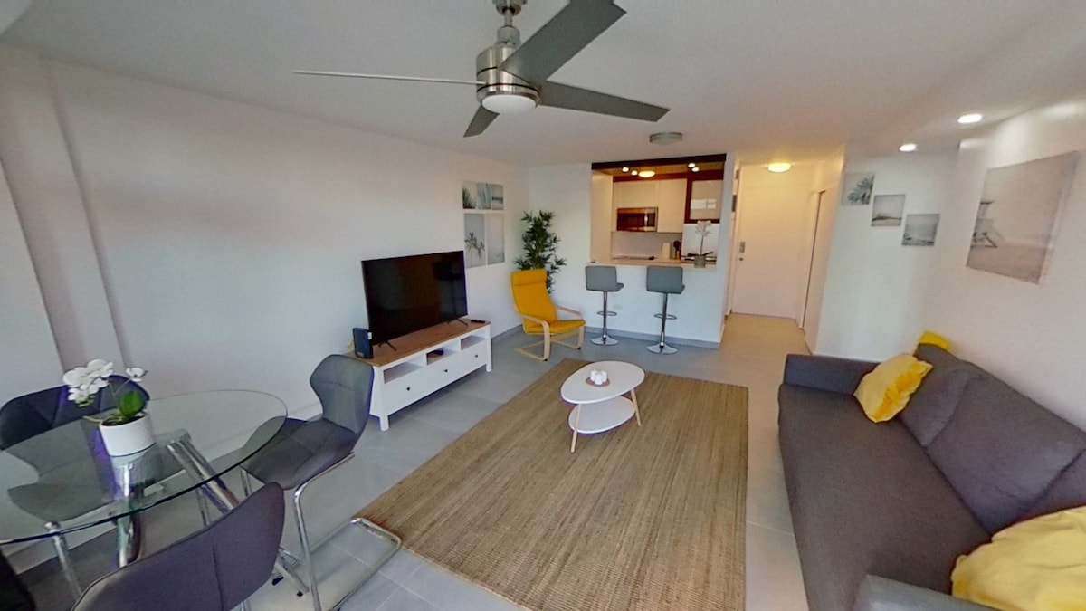 Hava limanından 5 dəqiqədən az məsafədə, səs-küylü gecə həyatına və ən yaxşı restoranlara qədər olan yarı xüsusi çimərlikdən yenidən qurulmuş mənzil pillələri. Gəzinti məsafəsində gec nahar edin, sonra daxil olan bütün imkanlarla gün ərzində Sunbathe, günortadan sonra Netflix ilə soyun və axşam saatlarında bar halqası ilə dincəlin... və ya sadəcə qonaqlayın! Adanı icarənizlə araşdırın, sonra öz şəxsi parkinqinizə qayıdın. Çatışmayan hər şey sizsiniz!!!