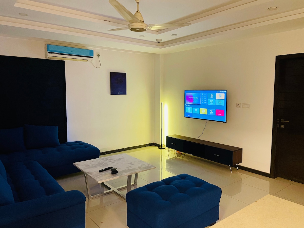 Luxury 1000 sq ft 1-bed apartment in Bahria Town Civic Centre. Enjoy a private balcony view, fast WiFi, self check-in, and all modern amenities. Located in the commercial hub with top brands, restaurants, cafes and cinemas at walking distance. Secure 24/7 parking and security available. Family & business traveler friendly. Airport pickup available on request. Comfortable, safe and perfectly located for short or long stays Our team is available 24/7 to assist you