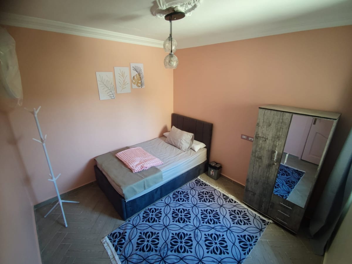 شقة واسعة ومريحة في الإسماعيلية، على بُعد دقائق قليلة من البحر (بحر نوراس). الشقة فيها غرفتين نوم و2 حمام، مناسبة جدًا للعائلات أو مجموعة صغيرة. الريسبشن كبير ومريح، والمطبخ مجهز تجهيز عملي. موجودة في منطقة هادية وحوالين المكان كافيهات ومطاعم كتير للراحة والاستمتاع، وسهل الوصول لأي مكان بعربية أو تاكسي.