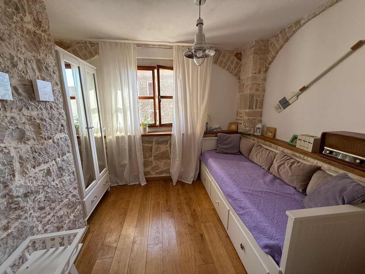Köhnə şəhərin mərkəzində yerləşən, sevgi ilə təmir edilmiş 19-cu əsrə aid miras ev. Növbəti qapıda parkinq pulsuzdur. Ev İstrian yarımadasını araşdırmaq üçün mükəmməl yerdə yerləşir - avtomobil ilə 30 dəqiqə ərzində yalnız bir neçəsini qeyd etmək üçün Motovun, Qroznjan, Rovinj, Pula.. daxil olmaqla bütün maraq nöqtələrinə çatacaqsınız. Sizi bir qədəh şərab və ya yerli içki ilə qarşılamağı səbirsizliklə gözləyirik. Giriş 24/7 mümkündür və səhər yeməyi sorğu əsasında mövcuddur (19EUR/adambaşı).
