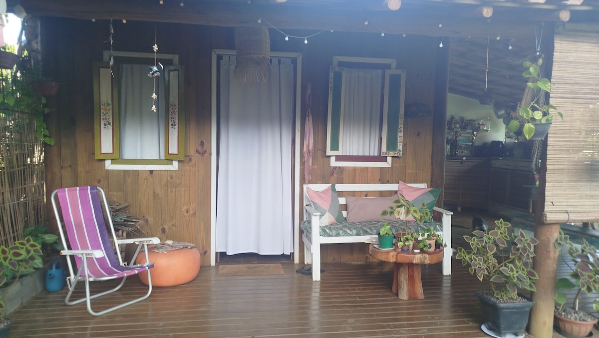 For those who enjoy comfort, privacy, and contact with nature, this retreat offers all of that with complete security! Refugio Araponga is an independent accommodation, located on the same property as the host's house, but with a separate entrance and exclusive area for guests. The suite offers the convenience of enjoying a late afternoon amidst the woods in a tranquil setting, where you can observe different birds and even marmosets that frequently come to visit.