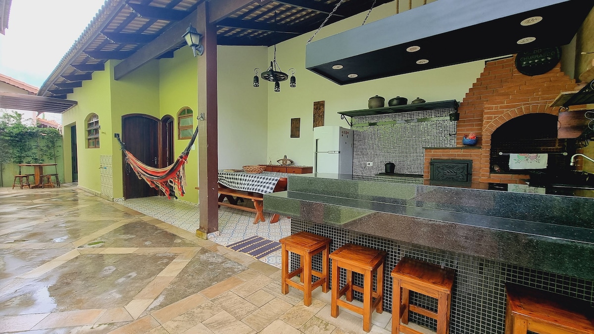 Ehtiyacınız olan bütün imkanları və daha çoxunu təklif edən ailə evi! - 2 örtülü məkan - Dənizə baxan böyük mətbəx - Buxarı ilə yemək otağı - Tavan ventilyatoru - Qonaq otağında yarım vanna - İstirahət məkanı - Böyük ölçüdə üzgüçülük hovuzu - Barbekü, hamam-tualet və duş - Barbekü qril dondurucusu - Mətbəx və barbekü qabları - Mercadinho a 5 mim piyada
