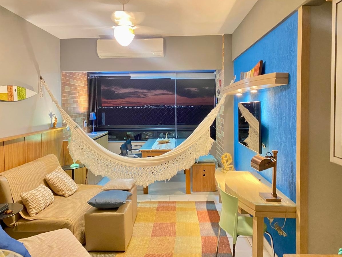 Ap. inteiro (andar 4), vista mar e Wi-Fi (350mbps em média). Perto da praia e no maior bairro boêmio da cidade (próximo ao “acarajé da Dinha”). Garagem privativa, 2 elevadores, piscina, lavanderia OMO (com aplicativo). Portaria 24h Utensílios de cozinha, geladeira, fogão elétrico, sanduicheira, ventilador, liquidificador, microondas e filtro de água; roupa de cama e banho para 2 pessoas; ferro elétrico,ar condicionado no quarto. Tv 32’ (chrome cast), livros. Chuveiro elétrico. Academia.