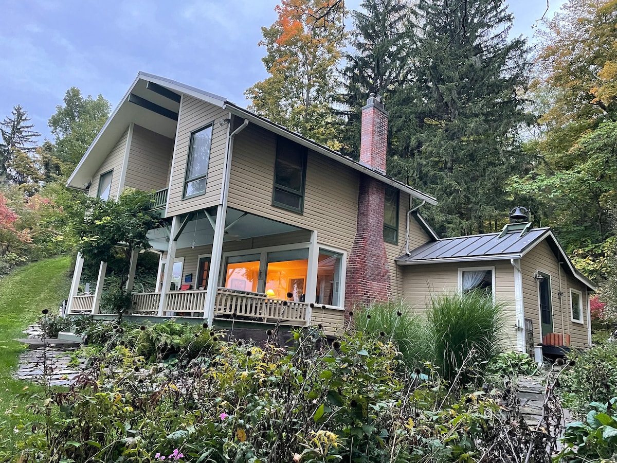 Your own comfy, private, immaculately clean 2-story cottage with A/C, full kitchen, dishwasher, full bath, wifi, TV+Roku, washer/dryer, deck, couch, desk, fire pit, grill, and free EV charging. Ideal for relaxing, remote work, or as base to explore the area's restaurants, trails, wineries, and more. Nestled against a wooded hillside, surrounded by trees, meadows, and marshes. Tons of birds and animals. 20-mins east of the Ithaca Commons and college campuses.