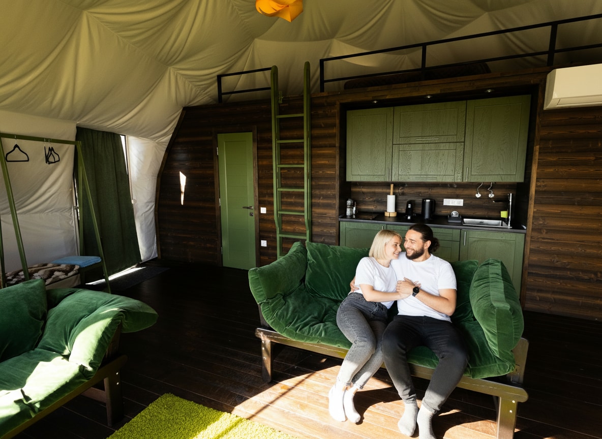WOOD is a spacious second-line dome at EcoSpace Glamping on the Kyiv Sea. With 50 m² of warmth, privacy, and comfort, it offers a peaceful retreat surrounded by nature. Panoramic views, wooden textures, and fresh air create the perfect setting for a romantic or slow getaway.