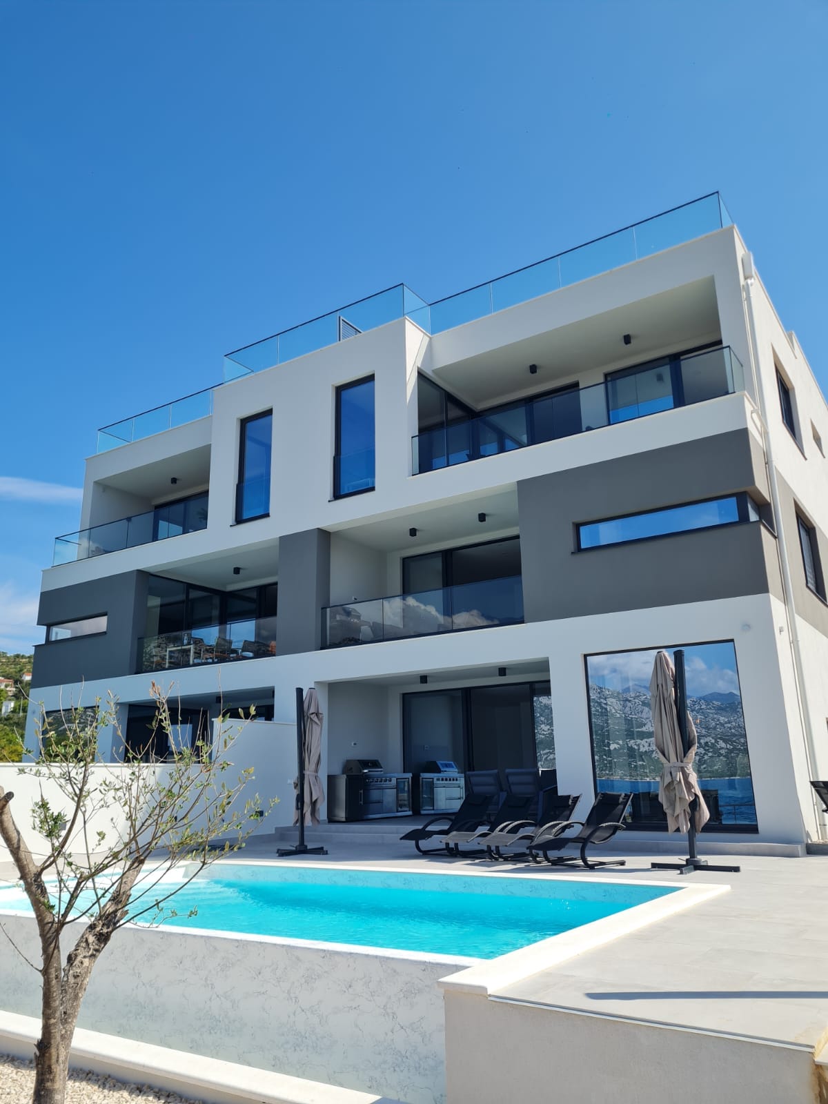 Rovanjska şəhərindəki mənzil evimiz hər birində 2 yataq otağı və 2 vanna otağı olan 3 mənzil, barbekü olan terras və tam avtomatik qəhvə maşını və paltaryuyan maşını olan tam təchiz olunmuş mətbəxi ilə heyran edir. Restoranlar və alış-veriş gəzinti məsafəsindədir. Mənzil 1-də əlavə olaraq öz istifadəniz üçün hovuz var. Mənzil 3-də həmçinin öz istifadə üçün şezlonqlar və barbekü olan dam terrası var.