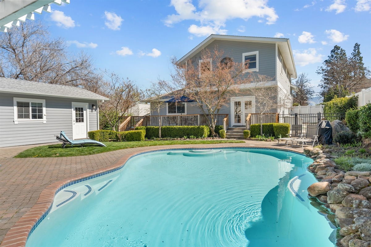 Perfect for Work Teams or Families to build lasting memories. Private home in Beautiful Scenic Medford Foothills! Close to everything, but out of town. Nearby dining and groceries. Quick drive to Ski Ashland, Crater Lake, Water Ski Lakes, Fishing Lakes, and Roxy Ann Winery. Hiking at Roxy Ann and Table Rocks. Vaulted Great Room, huge modular couch, 65" and 75" TVs, Redzone, Pool Table, Ping Pong, Coffee & Wine Bar, Golden Tee. Year-Round Hot Tub, Seasonal Swimming Pool (mid May-End of Sept.)