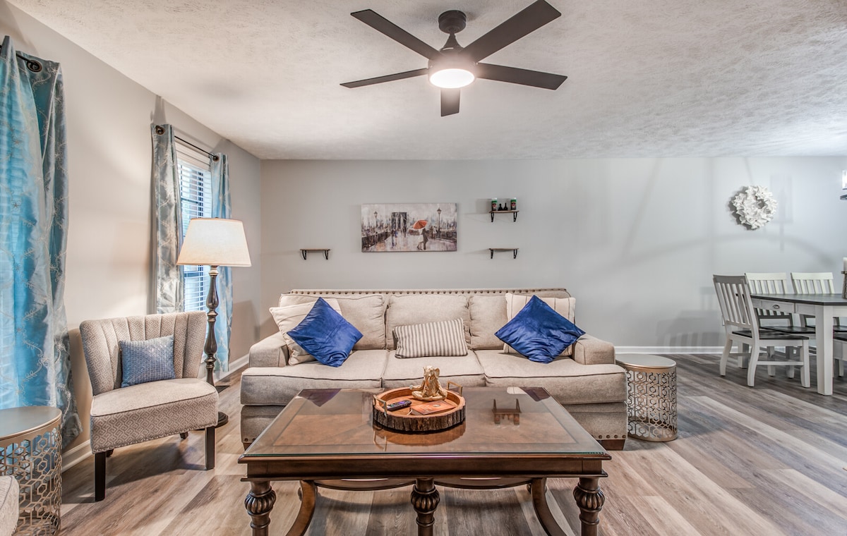 Mənzil Vafli Evi adlanır, çünki Vafli Evinin təsisçisi Co Rocersin evi idi. Məkan ayrıca girişi olan mətbəx, camaşırxana, qonaq otağı, hamam otağı və yataq otağı olan tam mənzildir. W Deaderick-də yerləşən bu yer Restoranlara , Fermer Bazarına və Hub City Brewing-ə qısa bir məsafədədir. Mən Hub City Brewing & Rock'n Dough Pizza + Pivə Zavodunda pivə istehsalçısıyam və həyat yoldaşım Hitachi Energy şirkətində işləyir. Aşağı hissədə yaşayırıq, buna görə də ehtiyacınız olan hər hansı bir şey varsa, yaxınlıqdadır.