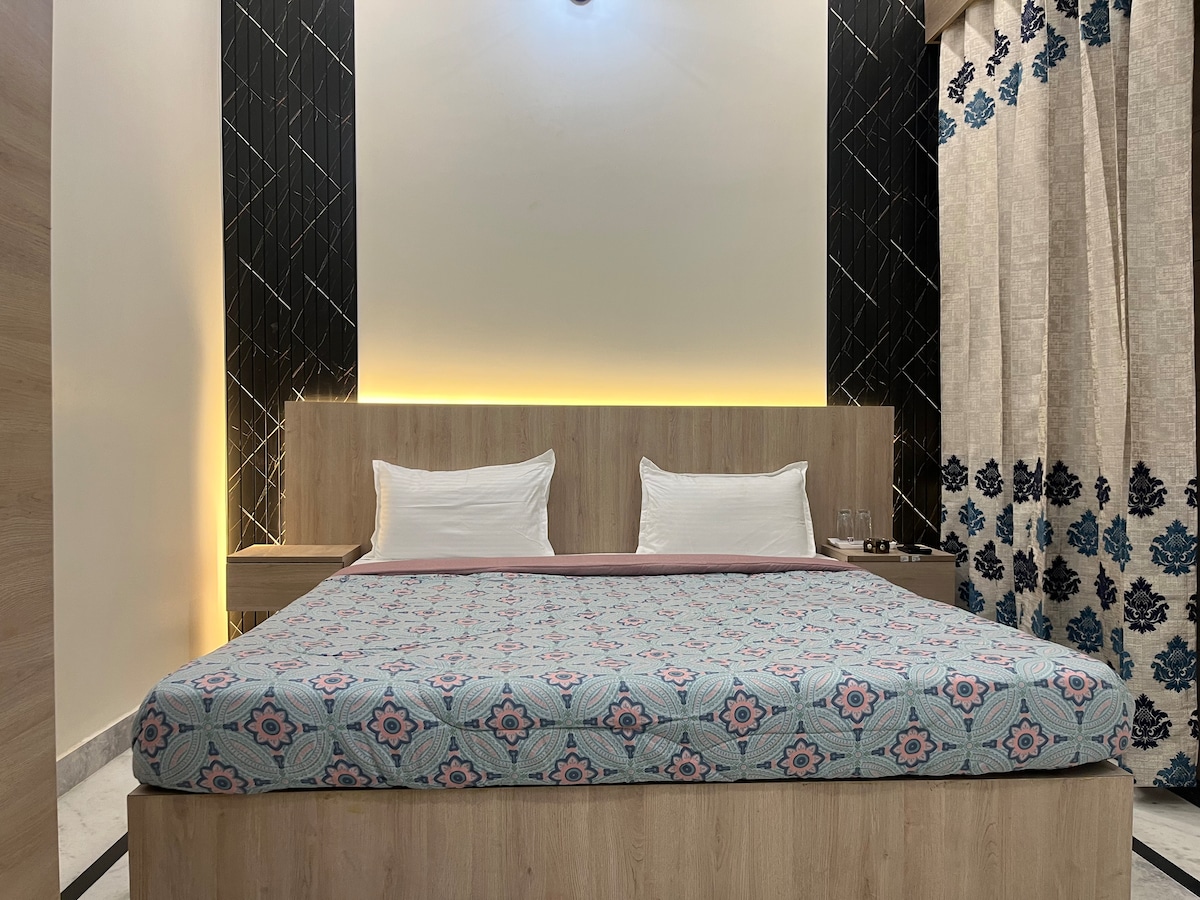 Experience comfort and convenience in this spacious room, perfectly located in Jaipur’s City Centre — just a 2-minute walk from the iconic M.I. Road. The room features two double beds and an en-suite bathroom, ideal for families or small groups seeking a relaxing stay close to all major attractions. Guests can enjoy access to a common terrace kitchen equipped with all essentials, along with outdoor seating that offers panoramic views of the Old City and Nahargarh Fort. We also serve breakfast