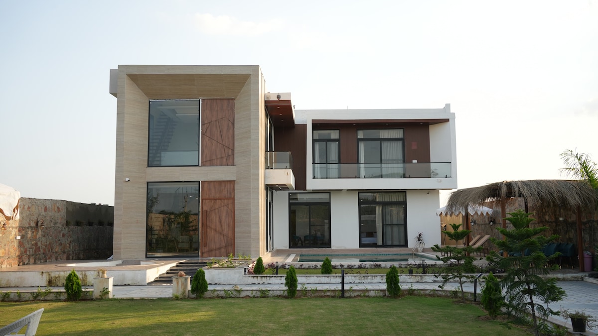Step into a 4-bed villa radiating bohemian charm and laid-back luxury. A courtyard-style layout wraps around a dazzling pool. Three eclectic rooms feature king beds; one offers two—all with ensuite baths. Just 10 mins from Vaishali Nagar’s vibrant cafes and chic bars, the villa boasts a 75” smart TV, Bose speakers, indoor/outdoor bars, a 1200-sqft living hall, and a curated kitchen. Relish 24/7 housekeeping, optional chef services,and seamless zomato&blinkit deliveries.