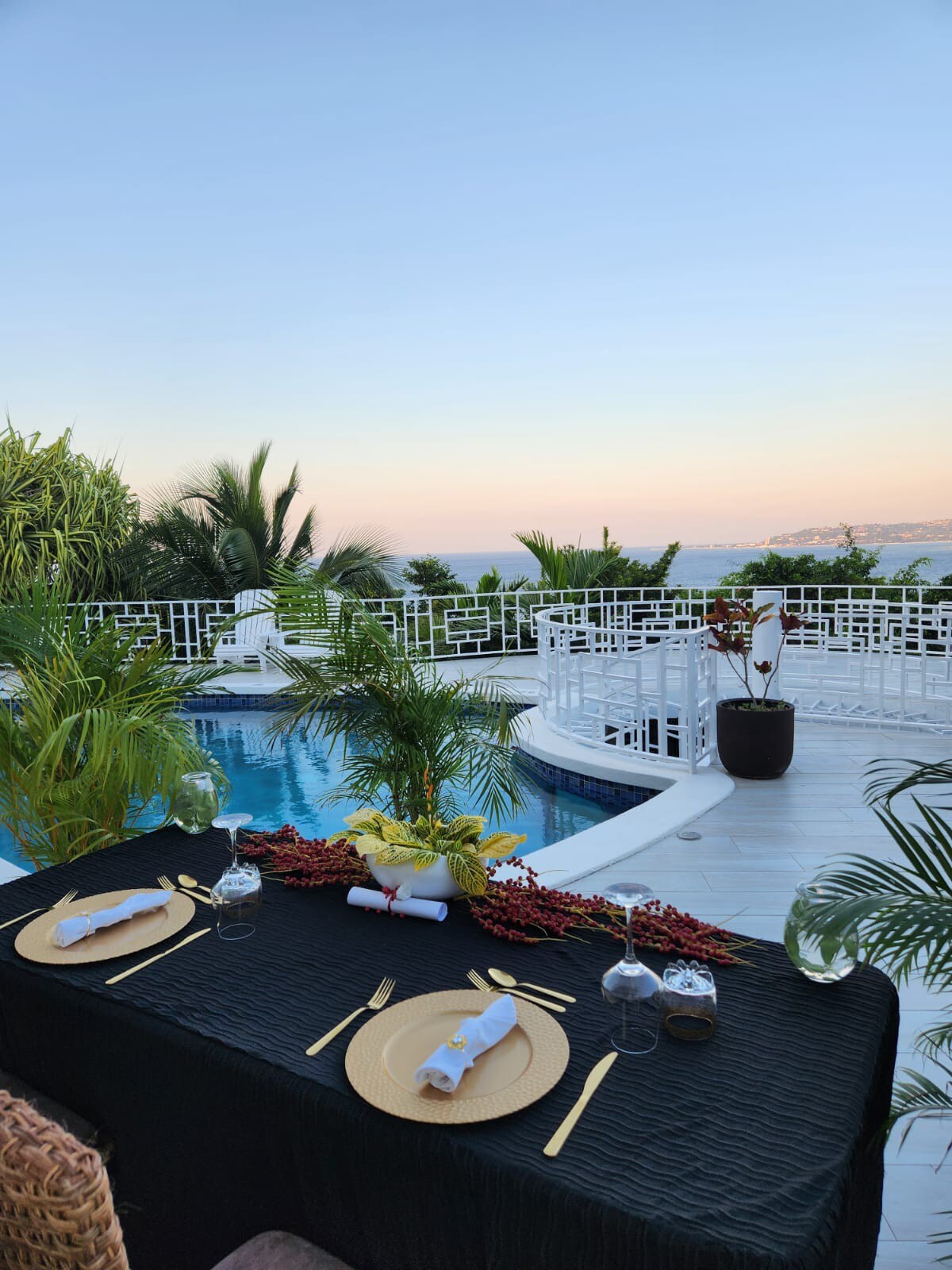 Spend memorable moments at our quiet oasis with Royal Palm trees, gardens, Jerk grills for outdoor cooking or just sit in the garden and enjoy the wind chime as it's soothing melody chimes as the winds blow. View of the Courtyard and open skies. Take a stroll down hill then up our spiral stairs to our elevated pool. Enjoy stunning ocean, mountain and city views from the pool deck. Or watch the sunset from the Floating Deck. Whatever your choice, you will enjoy the natural beauty. Whiterock.