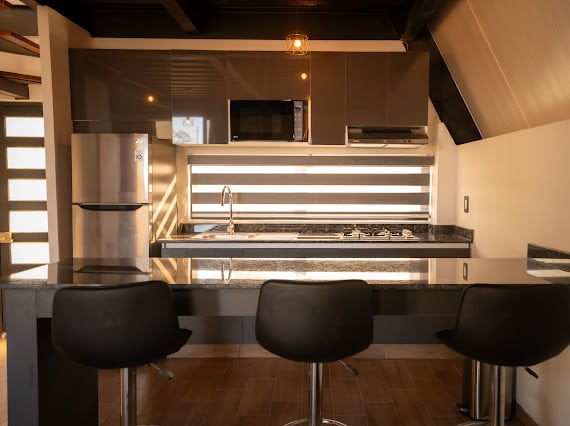 Cabaña a solo 10 min del centro de Pátzcuaro. Con todas las comodidades y rodeada de naturaleza que hará de tu estancia una experiencia de descanso y relajación. Cuenta con chimenea de leña, asador, fogatero. Áreas verdes con juegos infantiles y hamacas. La recámara principal cuenta con una cómoda cama King size y baño interior. Cocina equipada con todo lo necesario para tus comidas y una barra - comedor panorámica para que la disfrutes en tus comidas o celebraciones