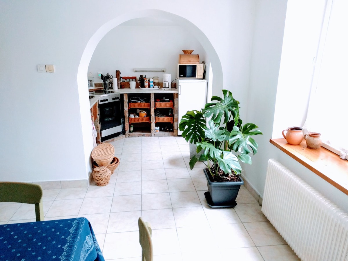 Şəhər mərkəzindən piyada məsafədə tam təchiz olunmuş mənzil. Mənzil fermerlər bazarından küçədə yerləşir və burada təzə yerli inqrediyentləri (meyvə, tərəvəz, süd məhsulları, ət) əldə edə bilərsiniz. Şəhər mərkəzinə piyada 5 dəqiqə uzaqlıqdadır. Təbiətdən zövq alırsınızsa, Dudova suma parkı da 6 dəqiqə uzaqlıqda yerləşir. Qonaqların bütün mənzilə çıxışı var. İki yataq otağı, hamam otağı, tam təchiz olunmuş mətbəx və qonaq otağı. Mənzildə pulsuz WI-Fi, eləcə də kabel televiziyası var.