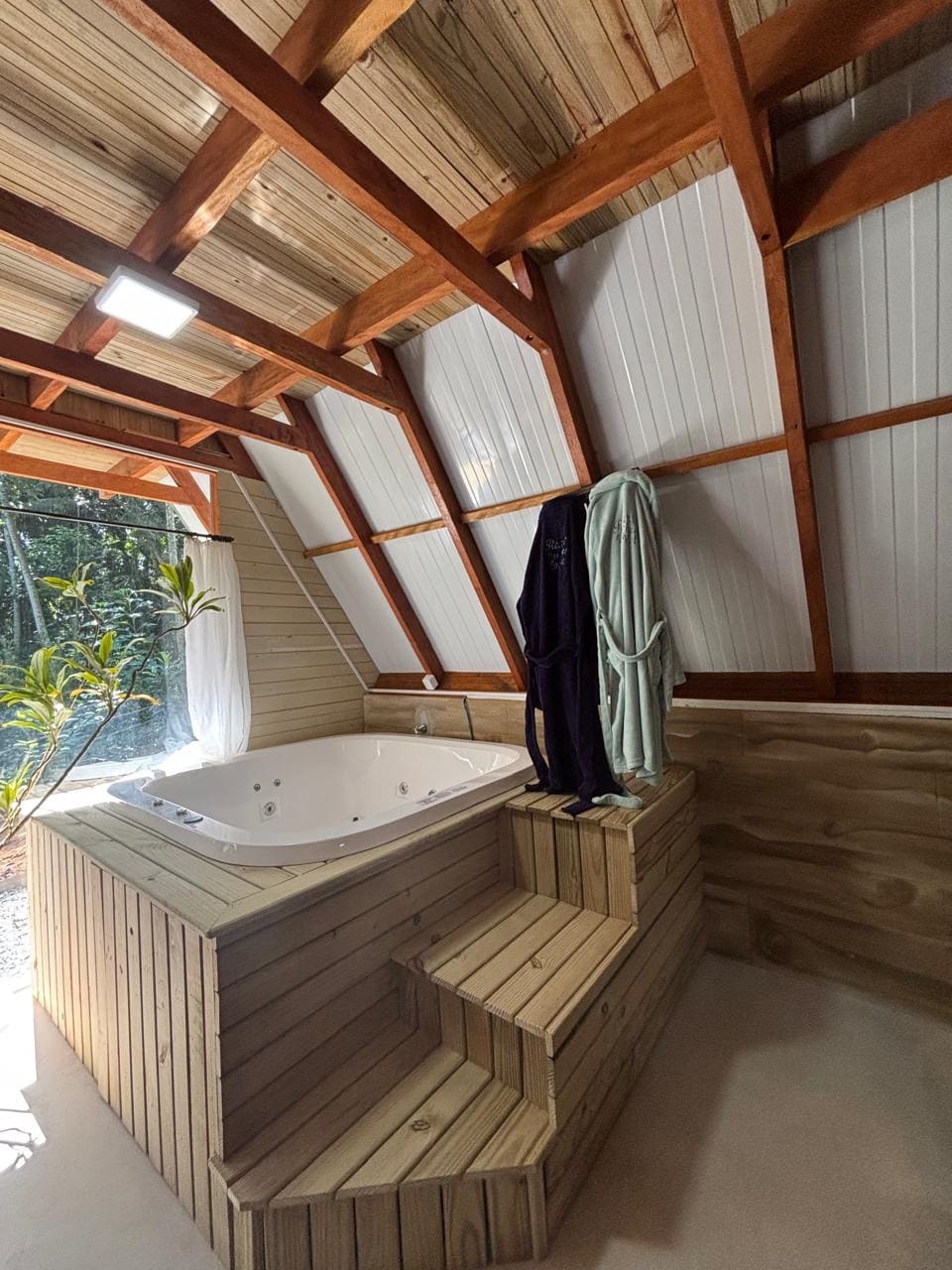 Ağacların yuxarısındakı evdə anlar yaşamaq təcrübəsi təsviredilməzdir. Jaraguá do Sul-da ən yüksək yerlərdən birində alternativ və rahat ev sahibliyi təklif edirik. Dağlarda təbiət canlıdır! Ağacları bürüyən küləyin səsi, quşların, marmosetlərin və bütün evi əhatə edən dələlərin oxuması bunu təmin edir. Təbiətin bizim evimiz olduğuna inanırıq və buna çox sevgi və sevgi ilə yanaşaraq qonaqlarımıza da eyni enerjini təklif etmək istəyirik.