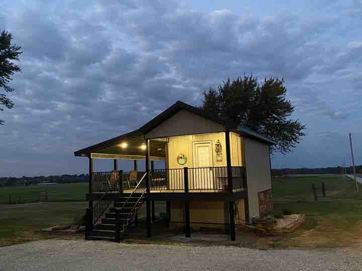 A cozy and romantic luxury tiny home with a private hot tub under the stars. Wake up with coffee on the porch swing, watch the sunset from the spa, and unwind by the firelight in the evenings. Designed for slow mornings, peaceful nights, and reconnecting — just outside Carthage and next to I-44, enjoy the countryside and easy access to town. Perfect for couples, solo retreats, or a small, restful escape.