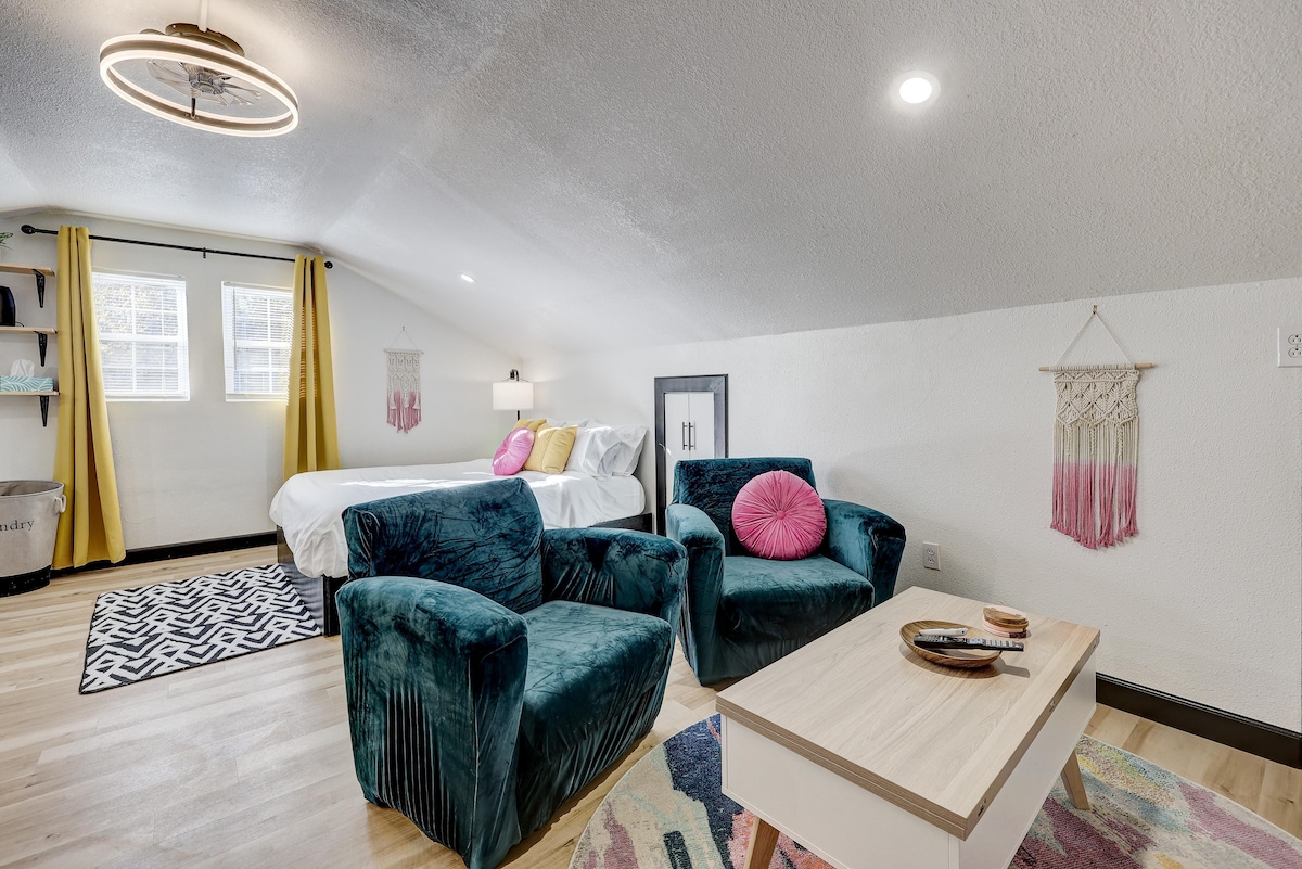 Experience luxury at an affordable price in downtown Webb City's Crow's Nest! This meticulously cleaned and renovated loft features a Nectar mattress, comfy chairs, classy bathroom, and a fully equipped kitchenette. It's 2 minutes off 249, close to boutiques, food, trails, theater, and the Praying Hands. Only 15 min to Joplin or Carthage. High-speed internet, pet-friendly, laundry, and a fenced yard. The Crow's Nest offers the most lavish and economical stay in Webb City. Book now!