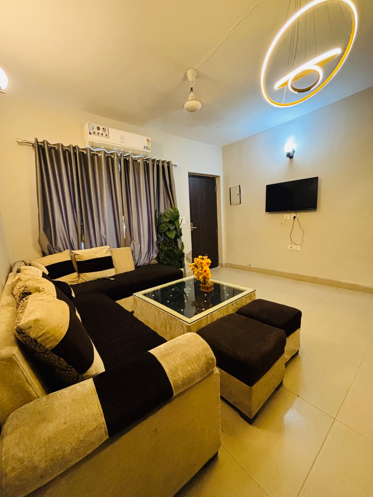Prem Mandirdən 3 km (10 dəq) ISKON-DAN 3,5 km (12 dəq) BankeBihari-dən 4 km (15 dəq). Vrindavanda Şəhər Lüksü Təcrübəsi! > 15-ci mərtəbədəki bu dəbli istirahət məkanı möhtəşəm estetikaya malikdir, tərtəmiz künclər, 24x7 lifti olan nəfəskəsici səma vistaları, yüksək sürətli internet və yaxşı təchiz olunmuş ləvazimatlar! > İki eyvanda dincəlin, rahat yaşayış yerində qəhvədən zövq alın, və ya yaxşı təyin edilmiş mətbəxdə yemək bişirin. Yataq otağının rahatlığına çəkilin və ya uzun duş qəbul edin - xoş gəldiniz!