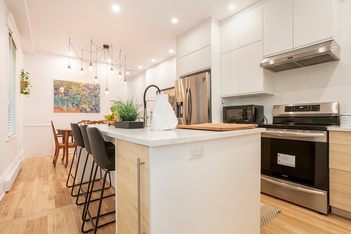 2022-ci ildə tamamilə təmir edilmiş, yüksək tavanlı bu 656 kvadrat metrlik mənzil özünüzü evinizdəki kimi hiss etməyinizə imkan verəcək. Zen üslubu, xoş və yaddaqalan qonaqlama keçirəcəksiniz. Mənzildə tam təchiz olunmuş mətbəx, paltaryuyan maşın/paltarqurudan maşın və mükəmməl iş sahəsi də var. Mənzil 4 nəfər üçün mükəmməldir və hər yataq otağında 50 düymlük televizor ilə məxfilik üçün 2 ayrı yataq otağı var. May-oktyabr aylarında dam terrasına giriş. Metro və ya avtomobillə 10-15 dəq. məsafədə CITQ - 299401