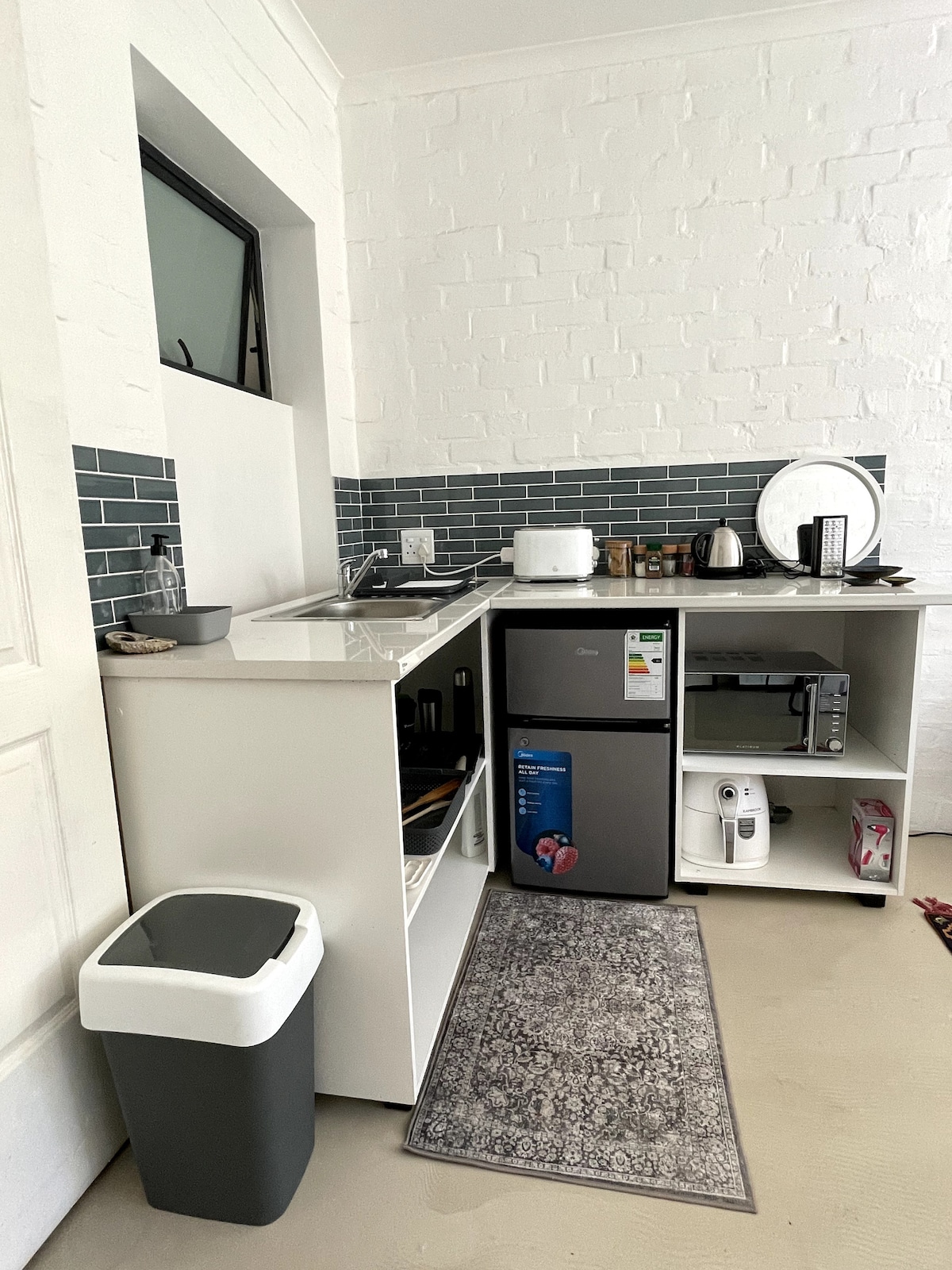 Əsas evə yaxın, özünü təmin edən sevimli ayrıca studiya. Studiyanın bir otağında ikinəfərlik çarpayı, hamam otağı, soyuducu, mikrodalğalı soba, kiçik iki boşqab soba və bütün yemək qabları, yemək masası, braai/bbq olan xüsusi əyləncəli məkan. Maksimum iki nəfər yatır. Çimərliyə 100 fut, öndə böyük sörfinq yeri və uzun gəzintilər. Restoran və mağazalara gedin. Kiçik şəhərin mərkəzində. Wi Fi.