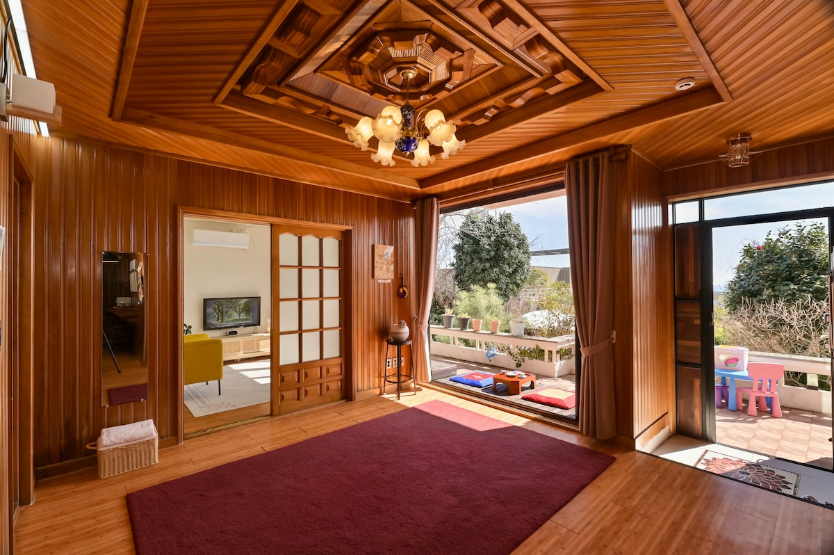 ★ Teras Okean Mənzərəli Sitrus Bağı ★ Pansionatımız Olae 5-ci Marşrutda Manqcanqpo adlı kiçik balıqçı kəndində yerləşir. Bu, cənuba baxan tək üzlü binadır və binanın şərqində Qonqçeonpo dənizinə, cənubda isə Manqcanqpo dənizinə yaxın yerləşir.Çimərliyə rahat gəzinti üçün əladır və çimərlikdə məşhur restoranlar, kafelər və əlverişli mağazalar var, buna görə də dənizə baxan restoranlarda və ya kafelərdə rahat yemək yemək üçün əladır.Qonaqlama yalnız 2 komanda (Otaq 101, 102) ilə sakit bir yataq və səhər yeməyidir və otaq 13,5 pyeonq (təxminən standart otel otağının ikiqat ölçüsü) geniş bir məkandır və şəkildəki göründüyündən daha böyükdür və yeganə ümumi sahə parkinq yeridir. Ayrıca iki nəfərlik otaq 150-179 sm ölçülü çarpayı və yataq dəsti, üç nəfərlik parça divan və televizor ilə təmin edilib. Mətbəx səyahət sevincini paylaşarkən şərab və ya pivədən zövq ala biləcəyiniz məkan kimi bəzədilib. Səhər quşların səsi ilə oyanın, sitrus bağına baxan terrasda dalğaların səsini dinləyin və gecə ulduzları sayın.
